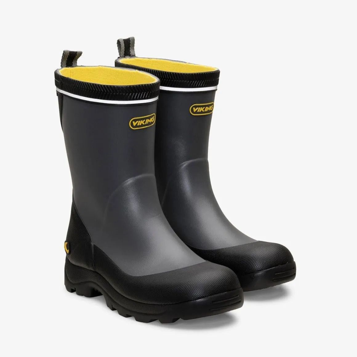 Stilen er normal passform og hele støvelen er laget av naturgummi som er elastisk, motstandsdyktig og vanntett. Sålen er ikke-merkende og innersålen er uttakbar for enkel tørking. Den er foret med et lett hurtigtørkende syntetisk tekstil. Alle Viking gummistøvler er håndlagde og i naturgummi, og denne støvelen er også PVC-fri og vegansk.