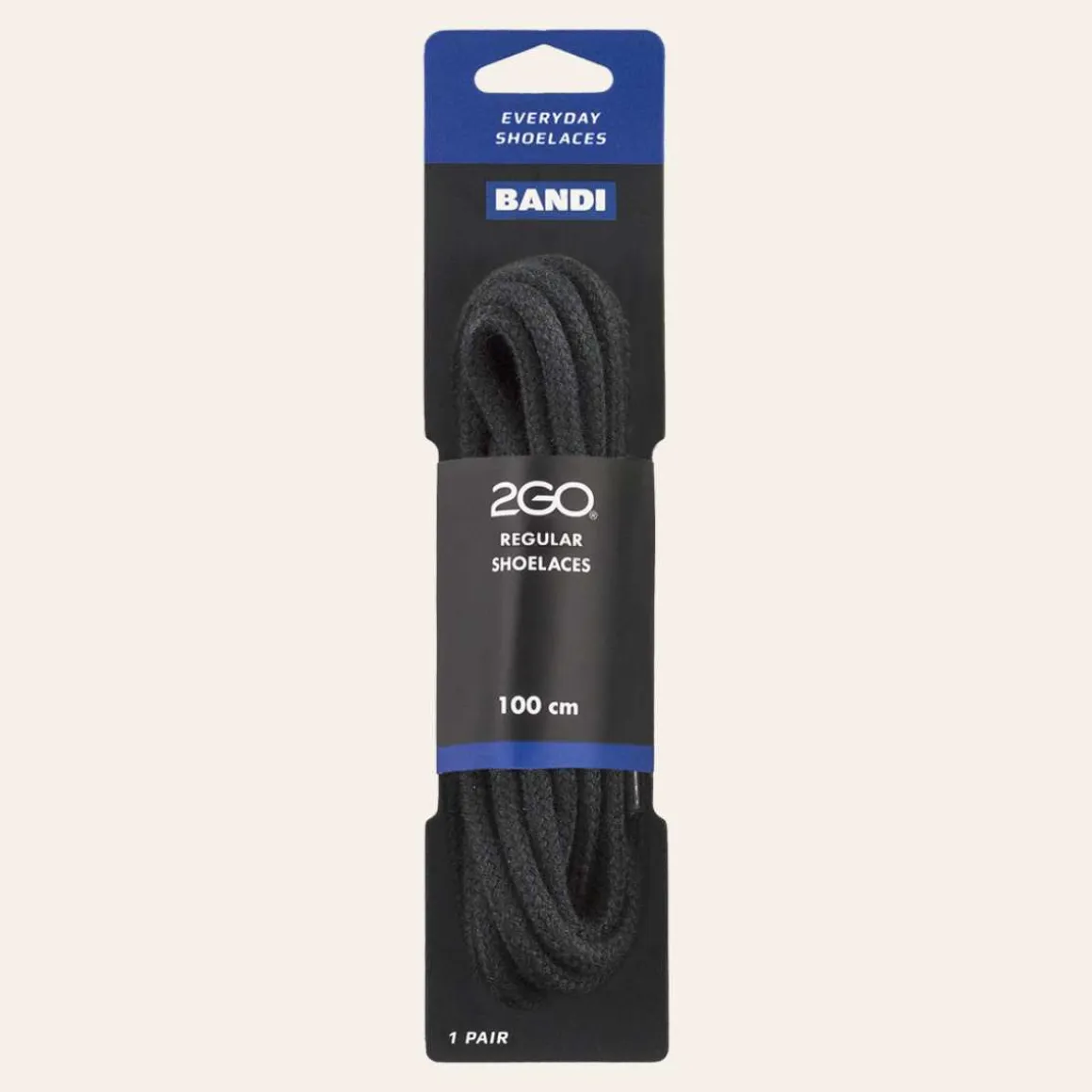 2GO Regular Shoelaces 180 Rund Black 100cm