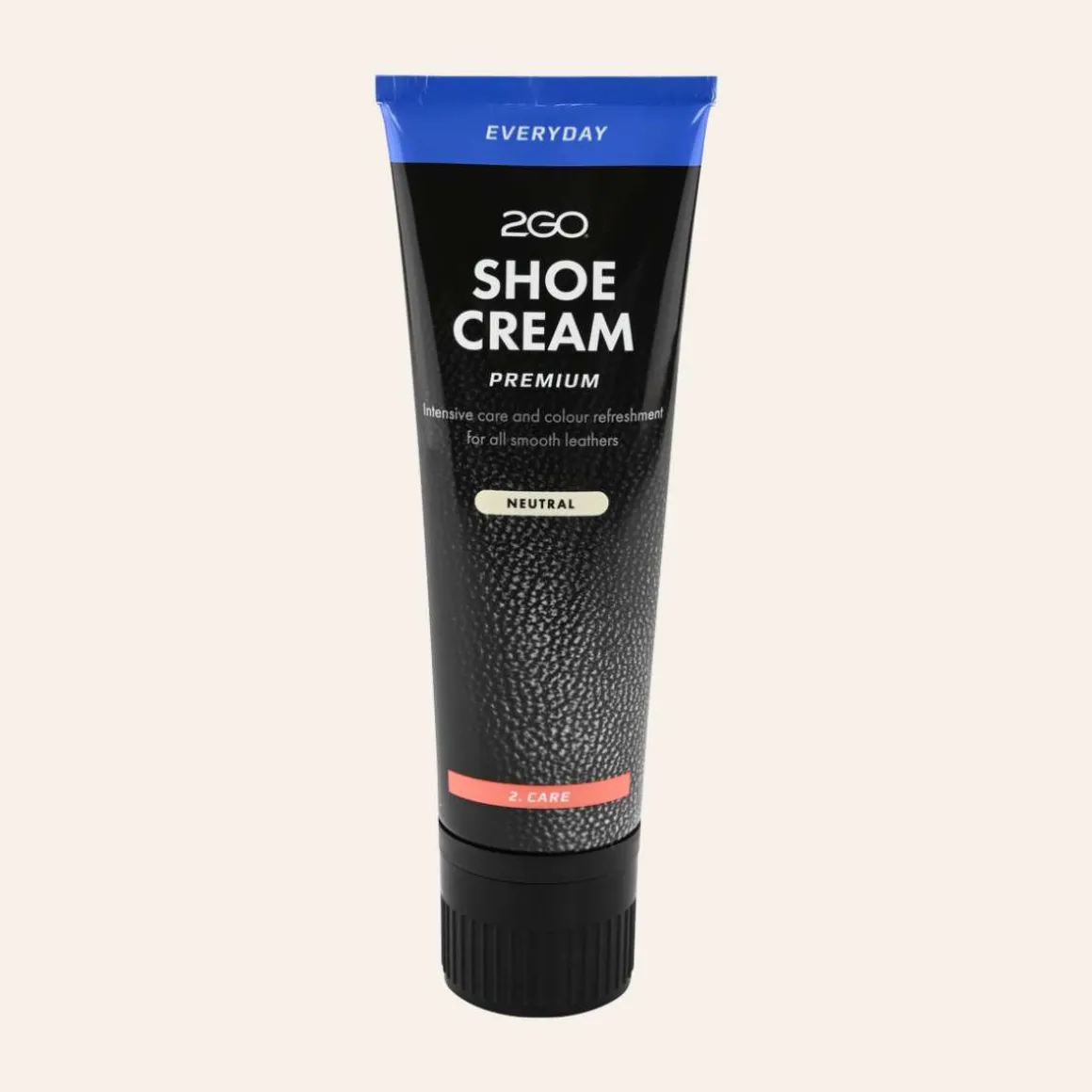 Skokrem fra 2GO i fargen mørke brun. For alle glatte skinntyper. Frisker opp fargen og gir næring til skinnet. Gir glans.