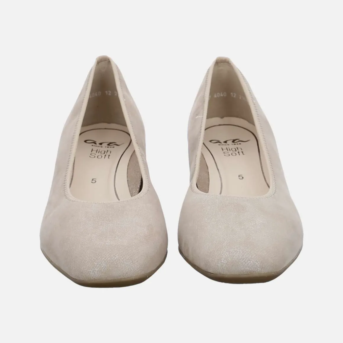 Myke og behagelig pumps fra Ara. Skinnoverdelen med en subtil skimmereffekt er visuelt tiltalende og veldig behagelig å ha på. Den gode komforten støttes videre av en svært fleksibel yttersåle og en mykt polstret dekksåle, funksjonene til HighSoft-funksjonen. Skoen tilpasser seg perfekt og passer skånsomt til fotbuen.