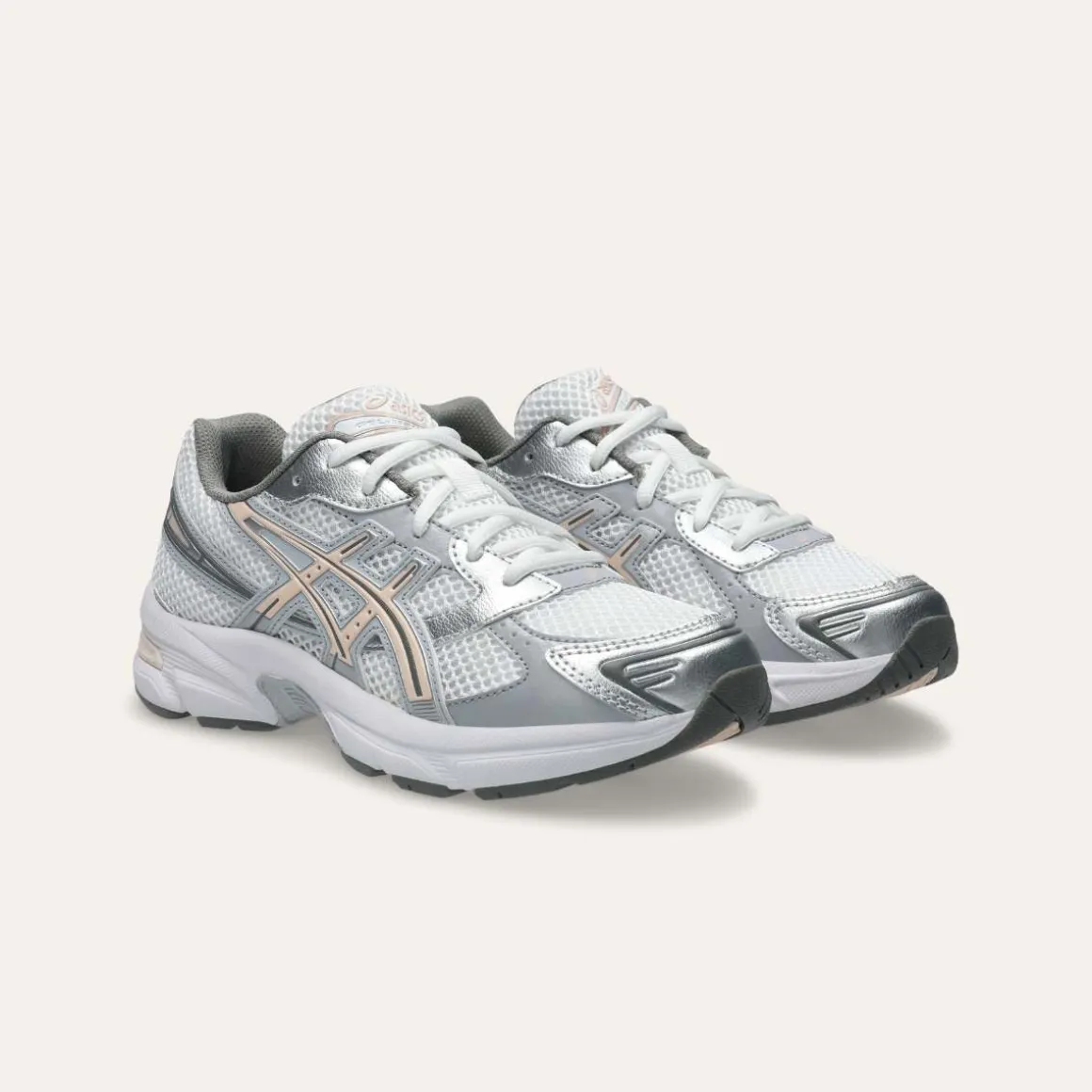 GEL-1130 GS (grunnskole)-sneaker spenner over flere tiår med designutvikling og hyller den niende utgaven av GEL-1000 -serien. Stabilitetsløpeskoen fra 2008 gir støtte til den lille, uansett hvilke eventyr som er i vente.