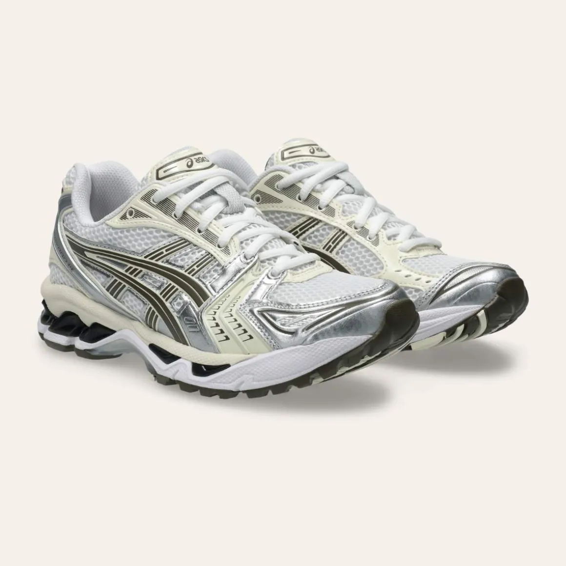 GEL-KAYANO 14 er en nytolkning av en retro løpesko med 2000-talls estetikk, inspirert av tidligere GEL-KAYANO-modeller fra Asics. Den oppdaterer ytelsen med nye materialer, samtidig som den beholder den originale mellomsålen med GEL-demping og forbedret passform. Overdelen har lagdelt skinn- og meshkonstruksjon fra 2008.