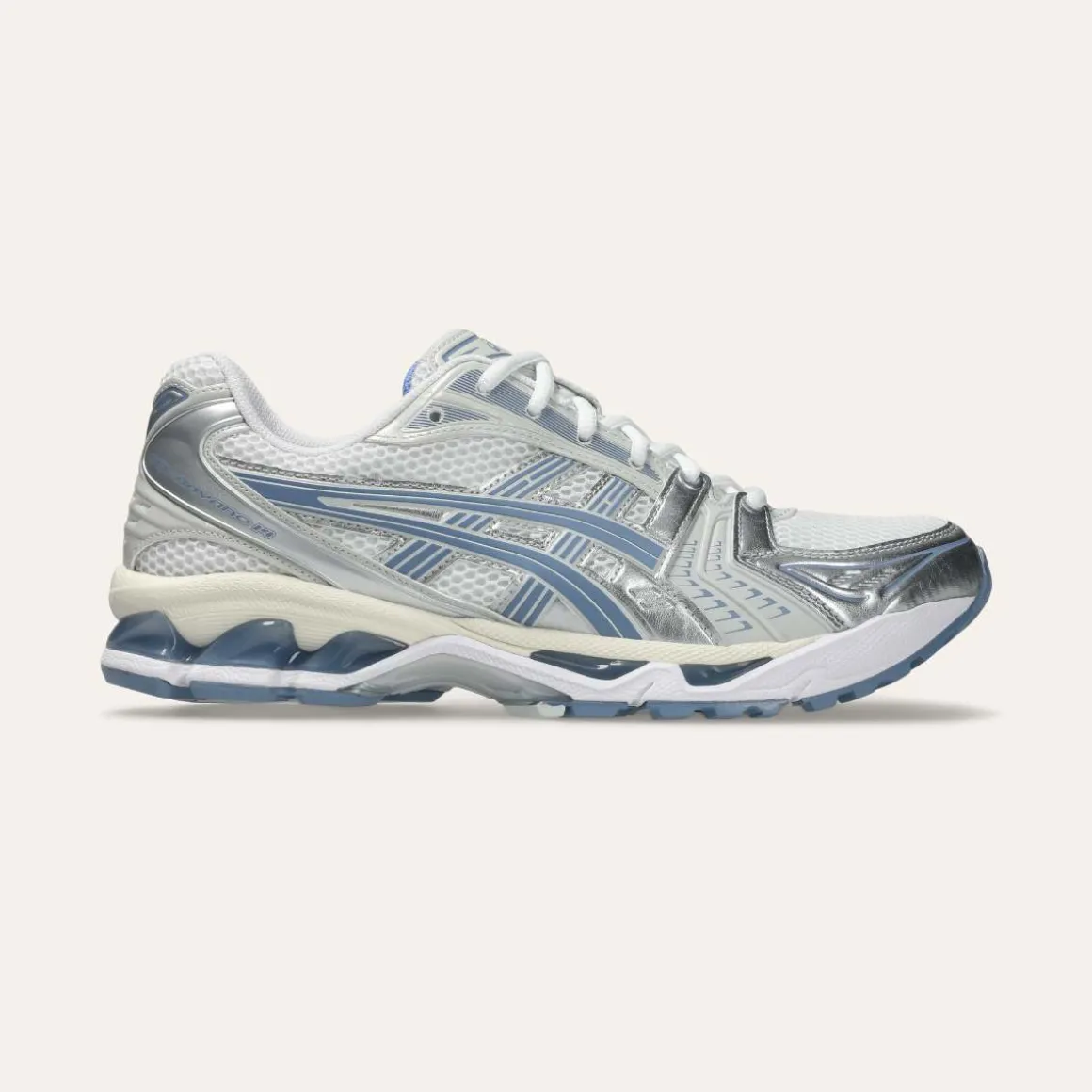GEL-KAYANO 14 er en nytolkning av en retro løpesko med 2000-talls estetikk, inspirert av tidligere GEL-KAYANO-modeller fra Asics. Den oppdaterer ytelsen med nye materialer, samtidig som den beholder den originale mellomsålen med GEL-demping og forbedret passform. Overdelen har lagdelt skinn- og meshkonstruksjon fra 2008.