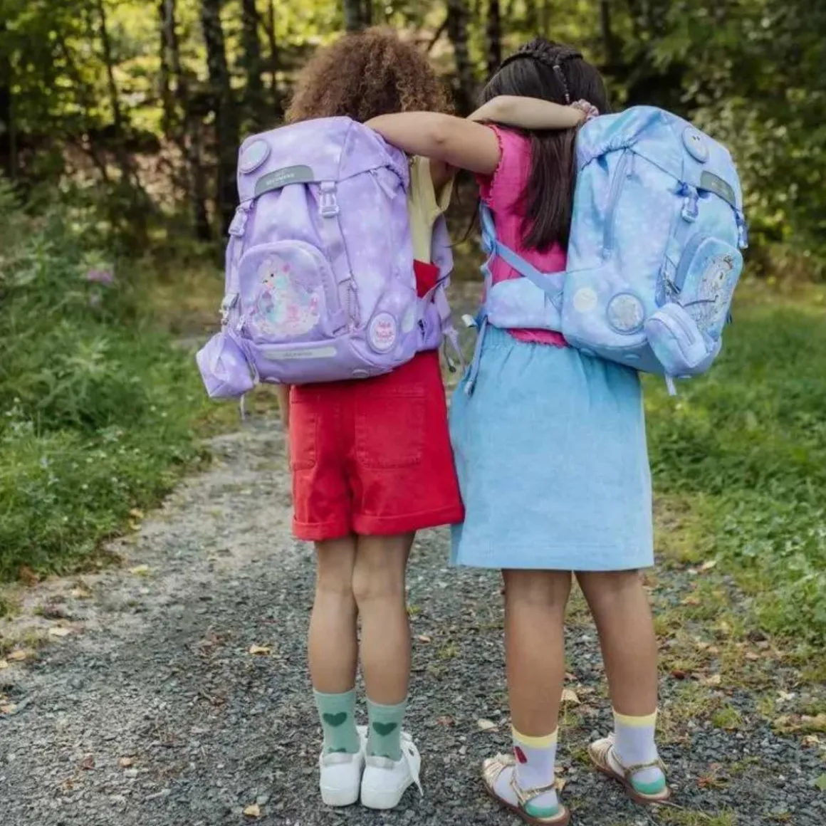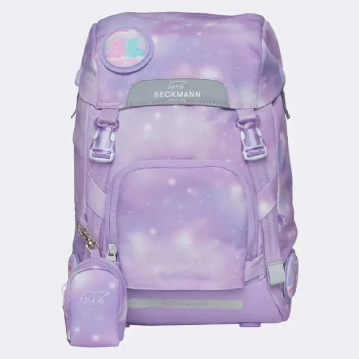 Ryggsekk fra Beckmann. I tillegg til figurer, mønster og farger, har sekken førsteklasses bærekomfort med polstring, justerbare stropper og vektfordeling. Sekken er utstyrt med regntrekk i lokket, en praktisk vanntett matbokslomme inni sekken, og mange ulike buttons som kan plasseres flere steder på sekken. Classic har rom for alt du trenger i skolehverdagen og er designet for å holde vekten inntil ryggen.