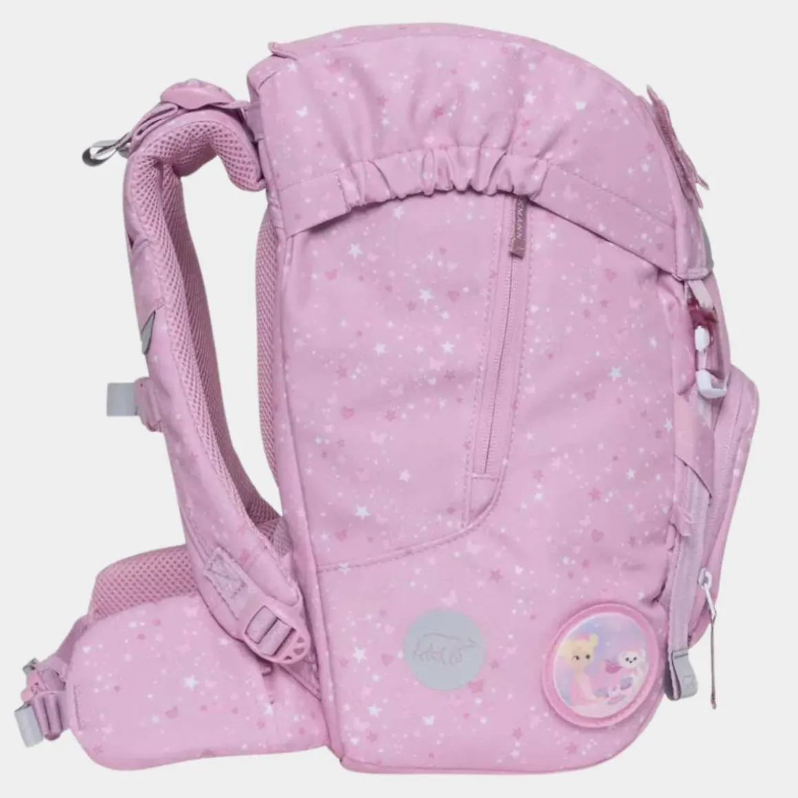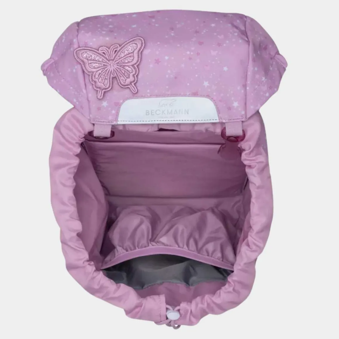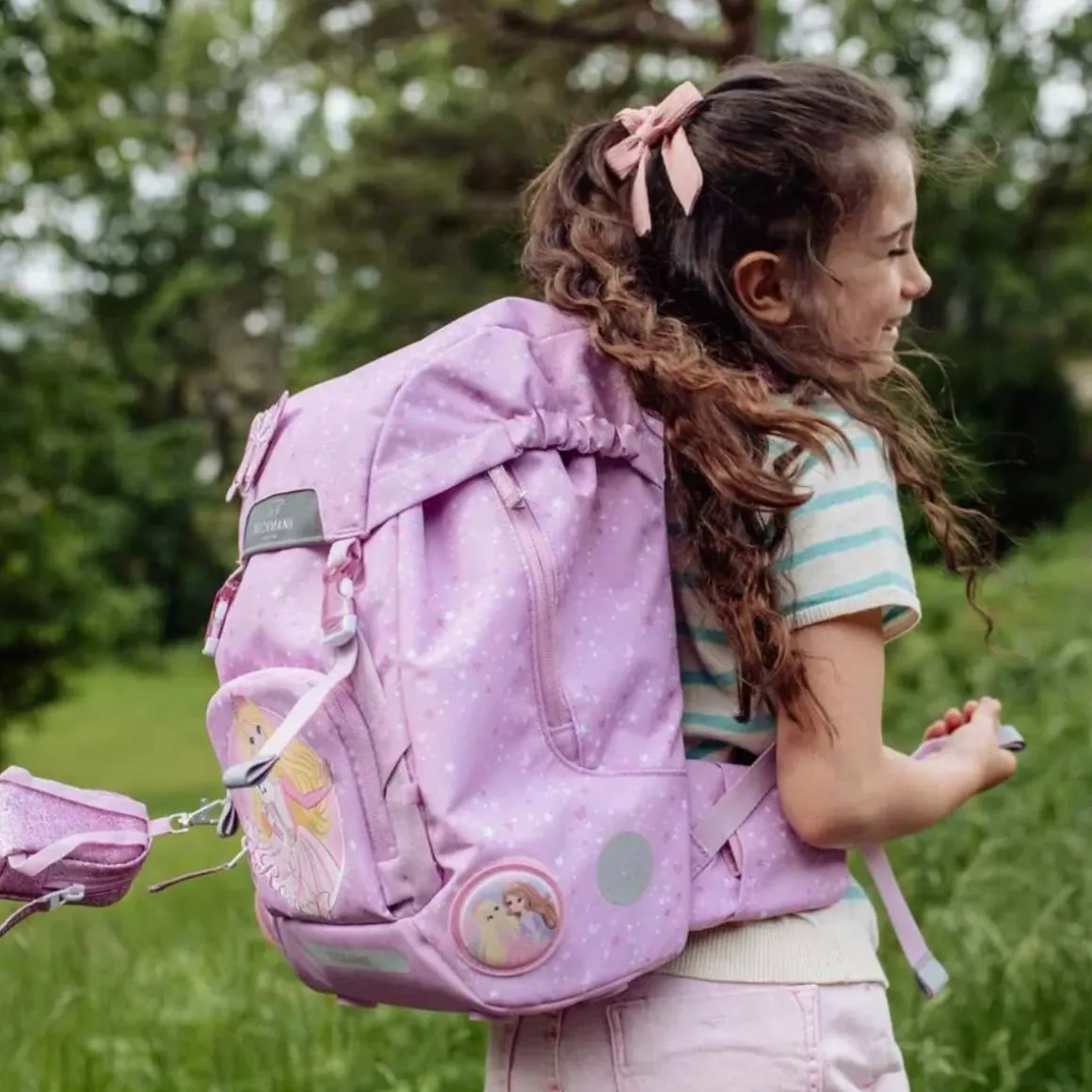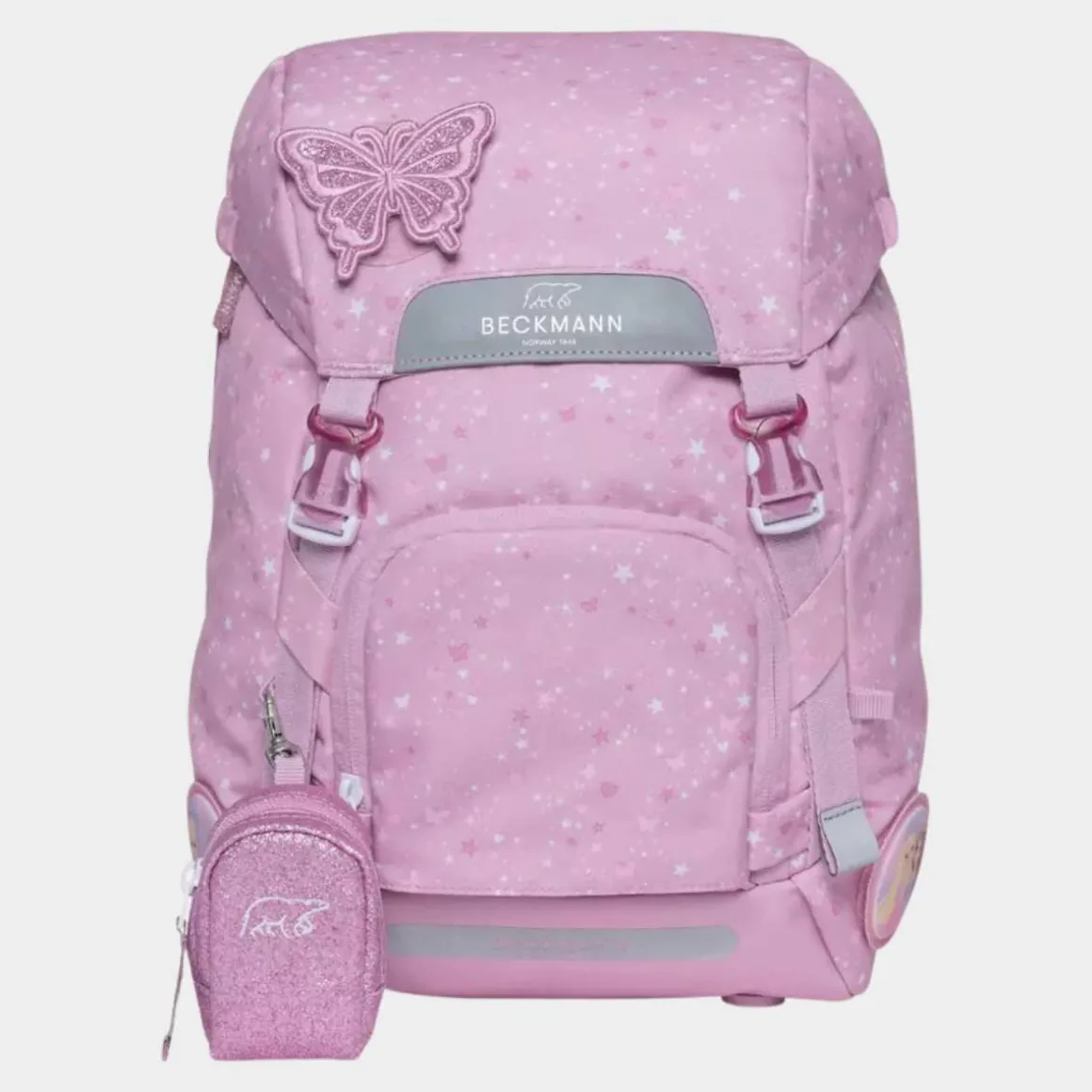 Ryggsekk fra Beckmann. I tillegg til figurer, mønster og farger, har sekkene fra Beckmann førsteklasses bærekomfort med polstring, justerbare stropper og vektfordeling. Sekken er utstyrt med regntrekk i lokket, en praktisk vanntett matbokslomme inni sekken, og mange ulike buttons som kan plasseres flere steder på sekken. Classic har rom for alt du trenger i skolehverdagen og er designet for å holde vekten inntil ryggen.