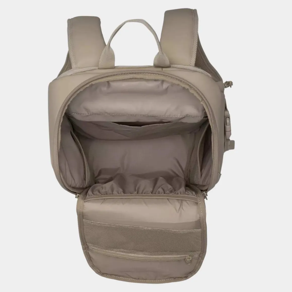 - Polstret rom til laptop 16” tilgjengelig fra utsiden og innsiden