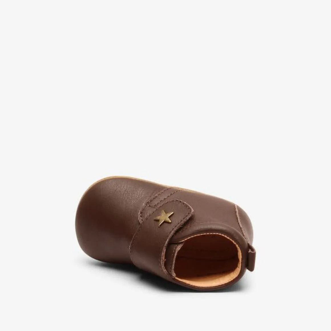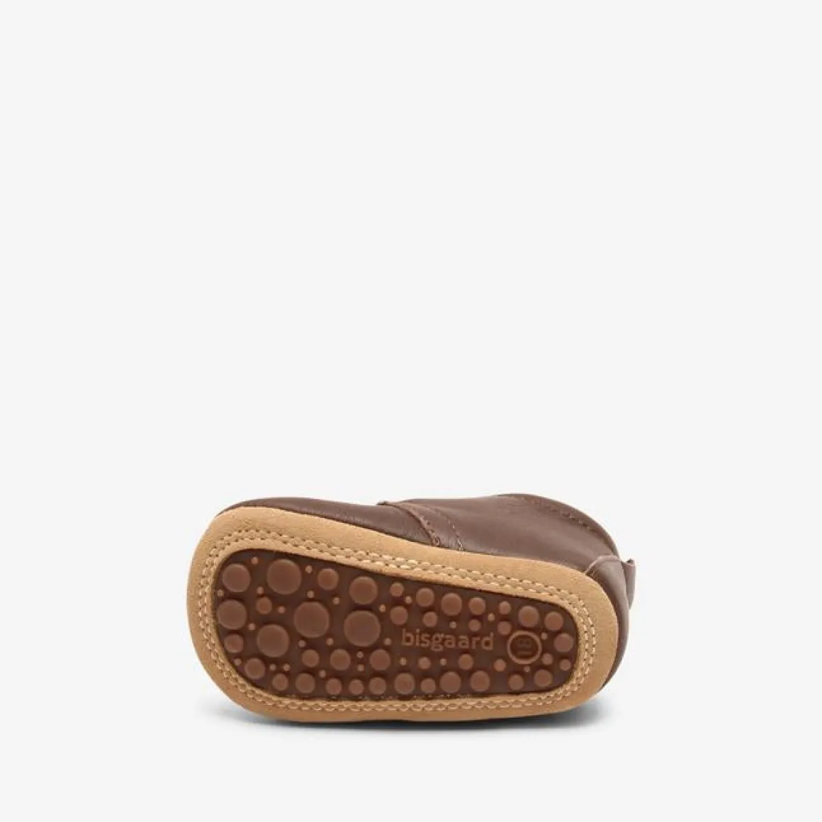 Baby star-tøfler fra Bisgaard er en hjemmesko designet for å holde de små tærne komfortable og tettsittende hele året. De er laget av førsteklasses, naturlig og pustende skinn som lar føttene puste. Den fleksible og glidfrie yttersålen i naturgummi sørger for et godt grep. Takket være de justerbare borrelåsfestene er ‘Baby star’ en lett å bruke sko for selv de minste barna.