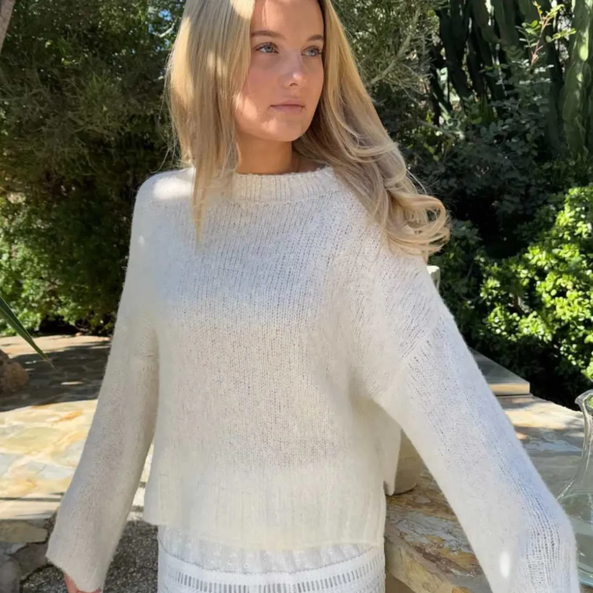 Koselig genser i ullblanding med løs passform og ribbekanter.