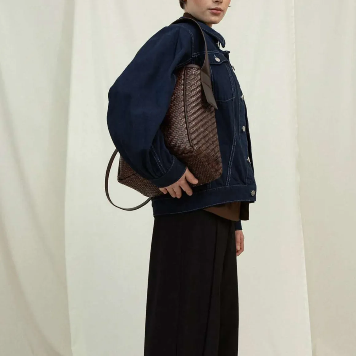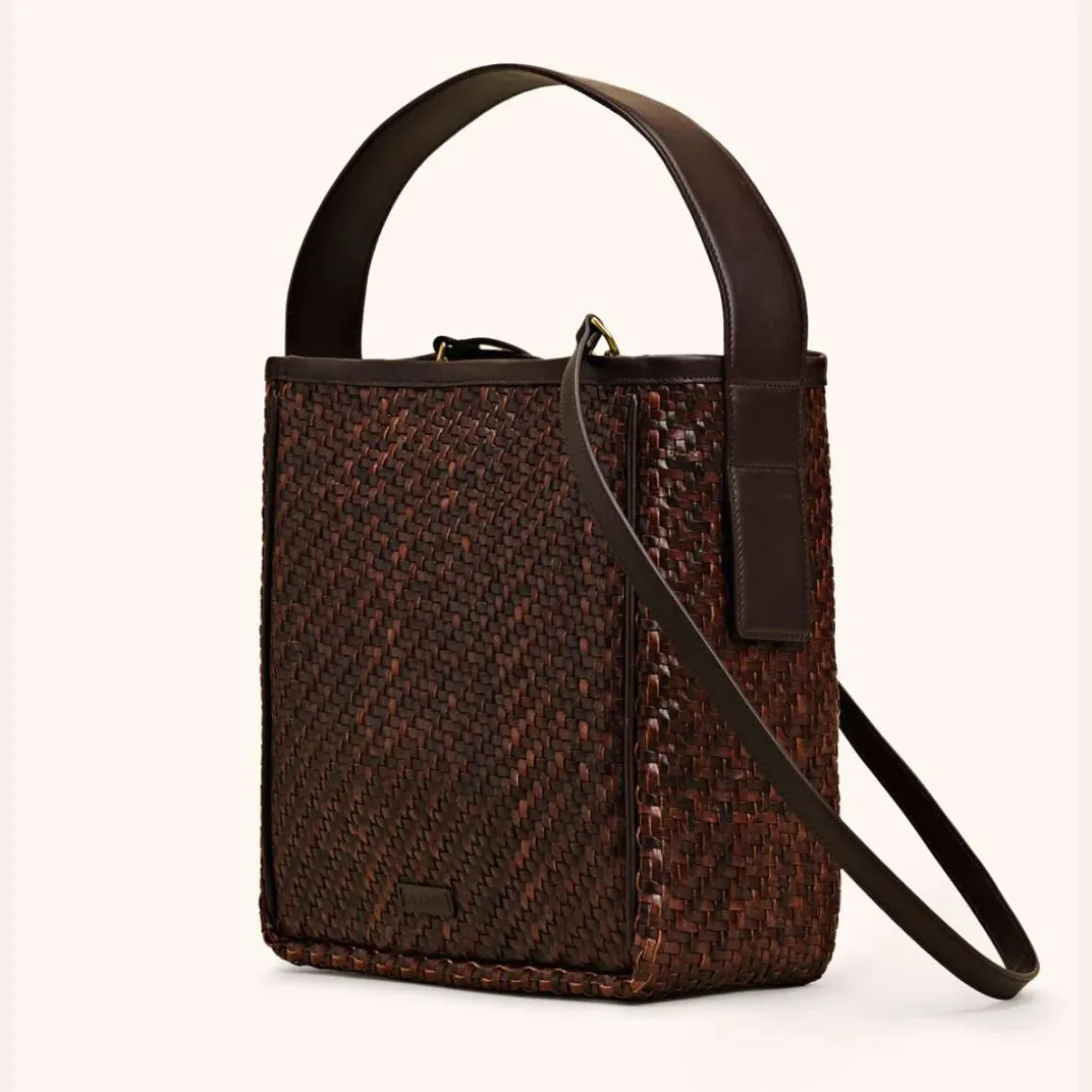 Cala Jade Iwa. Kvalitetsvesker med det lille ekstra. Laget for å vare – Iwa er tidløs og uanstrengt. Den firkantede vesken er en hverdagslig følgesvenn som bærer datamaskinen og mer. Vevingen av lær gir tekstur og holder formen. Bred slip-in lomme på innsiden.