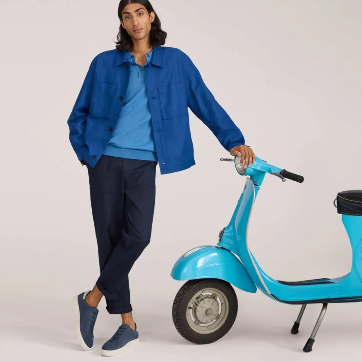 - Nubuck-overdel i Navy Blazer; justerbare stretch-snører