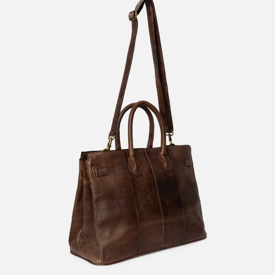 Laget i Dixie sin Urban-skinnkvalitet – et naturlig, frest kuskinn, hvor hver veske er behandlet og farget før overflaten er ferdigbehandlet, noe som bevarer det originale naringsmønsteret til det rå læret. Etter at veskene er farget, påføres lett voks for hånd, noe som gir en glatt og myk finish med unike egenskaper.