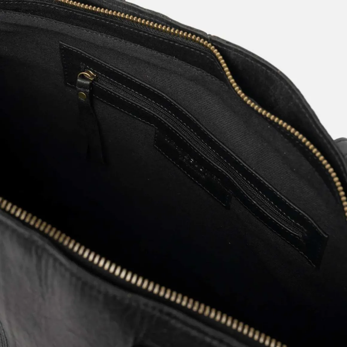 Vesken er laget i vår Urban leather-kvalitet – et naturlig, strukturert kuskinn der hvert eksemplar bearbeides og farges før overflaten ferdigstilles, slik at den opprinnelige narvstrukturen i skinnet bevares. Etter farging påføres et lett vokslag for hånd, som gir en myk og jevn finish med unike detaljer i hvert produkt.