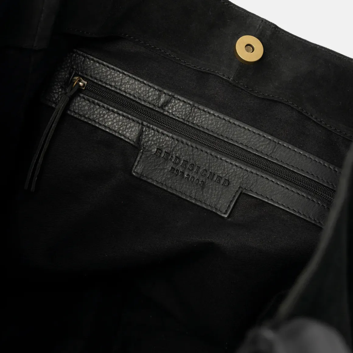 Laget i vårt Urban semsket skinn – et naturlig, preget kuskinn hvor hver veske bearbeides og farges før overflaten ferdigstilles. Dette bevarer det originale mønsteret i skinnets struktur. Etter farging påføres et lett vokslag for hånd, noe som gir en glatt og myk finish med unike detaljer.