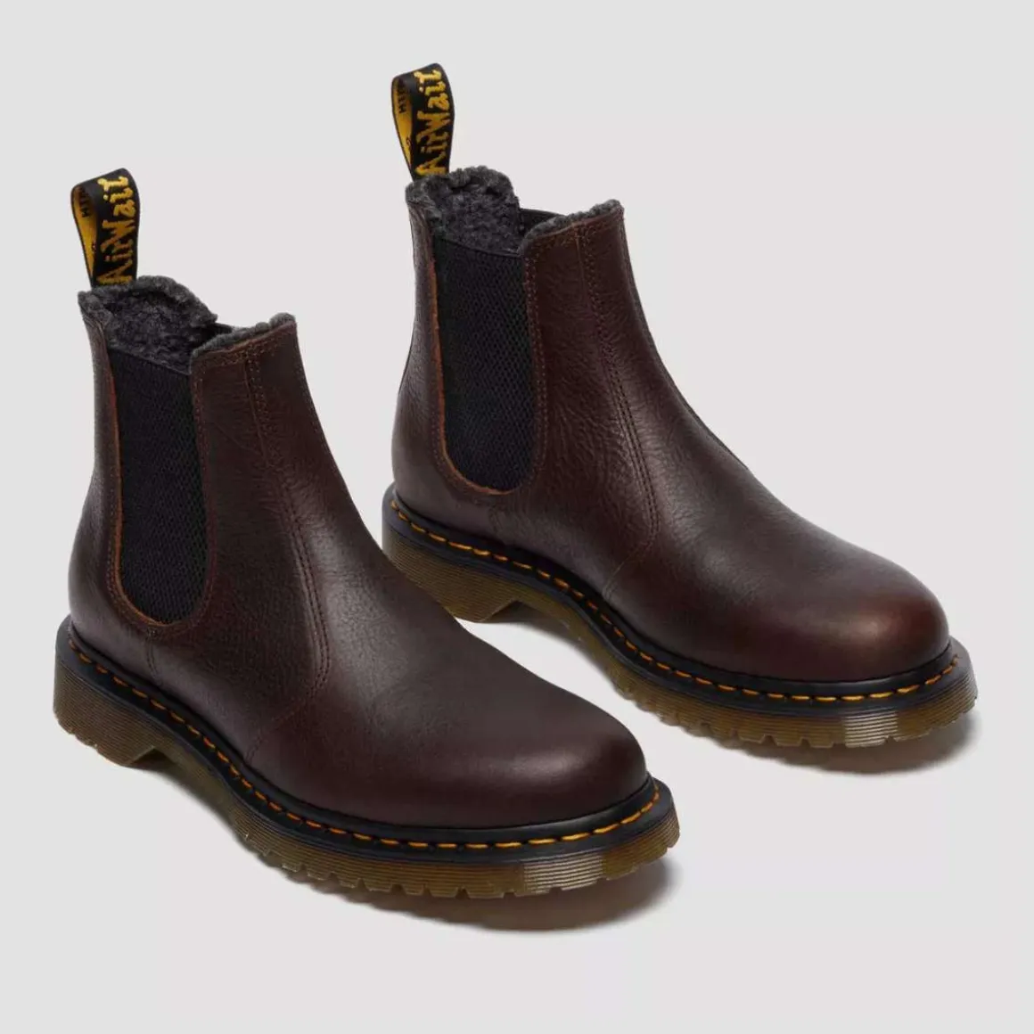 Dr. Martens 2976 WarmWair Grizzly Chelsea Boots kombinerer klassisk stil med moderne komfort. Disse robuste Chelsea-støvlene er laget av slitesterkt Grizzly-lær, som har en kornete og teksturert finish, og er designet for å tåle tøffe forhold. Med innebygd WarmWair-isolasjon, holder de føttene varme i kaldt vær.