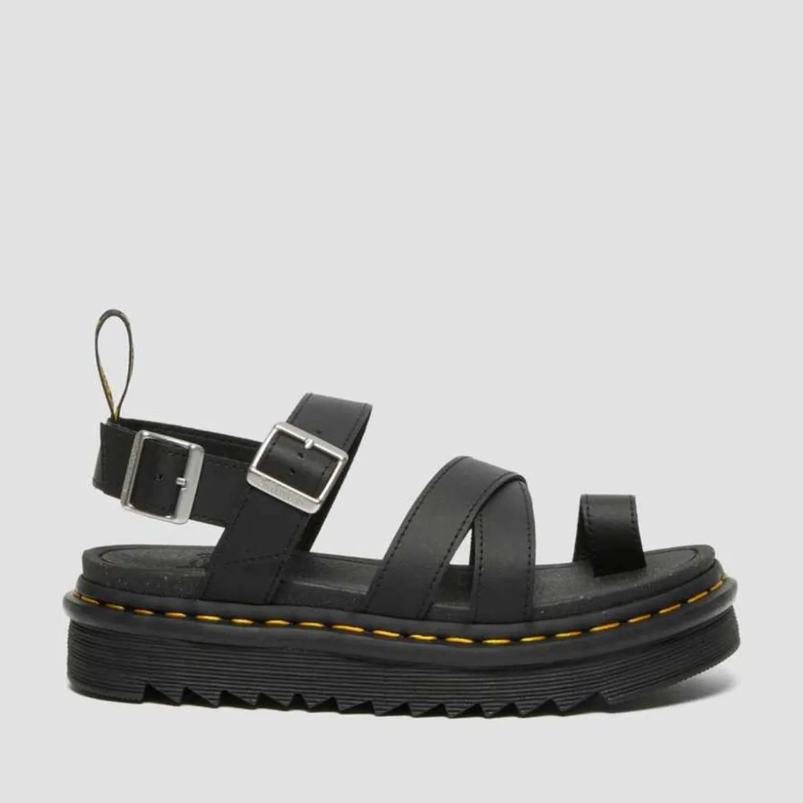 Dr. Martens Avry skinn sandaler er en trendy sandal med sine kule detaljer. Sandalen er utstyrt med en tåstolpe foran sammen med justerbare stropper for en ekstra sikker passform og ubegrenset handling. Bygget av Hydro Leather med sølvkant.