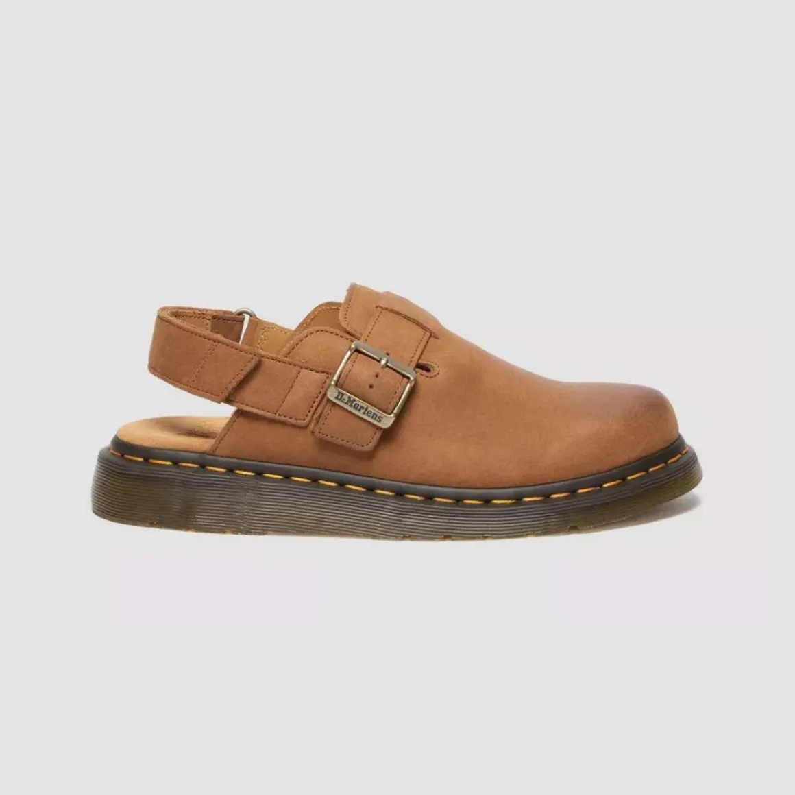 Delvis sko, dels sandal: Jorge II-muldyret handler om enkel bruk og hverdagslig allsidighet. Dette paret er bygget med nubuck-overdel og satt på Dr Martens klassiske Shore-sandalsåle. Klar til å gå hele sommeren. To justerbare stropper sikrer en behagelig passform. Gule welt-søm vil markere deg som en DM-bruker.