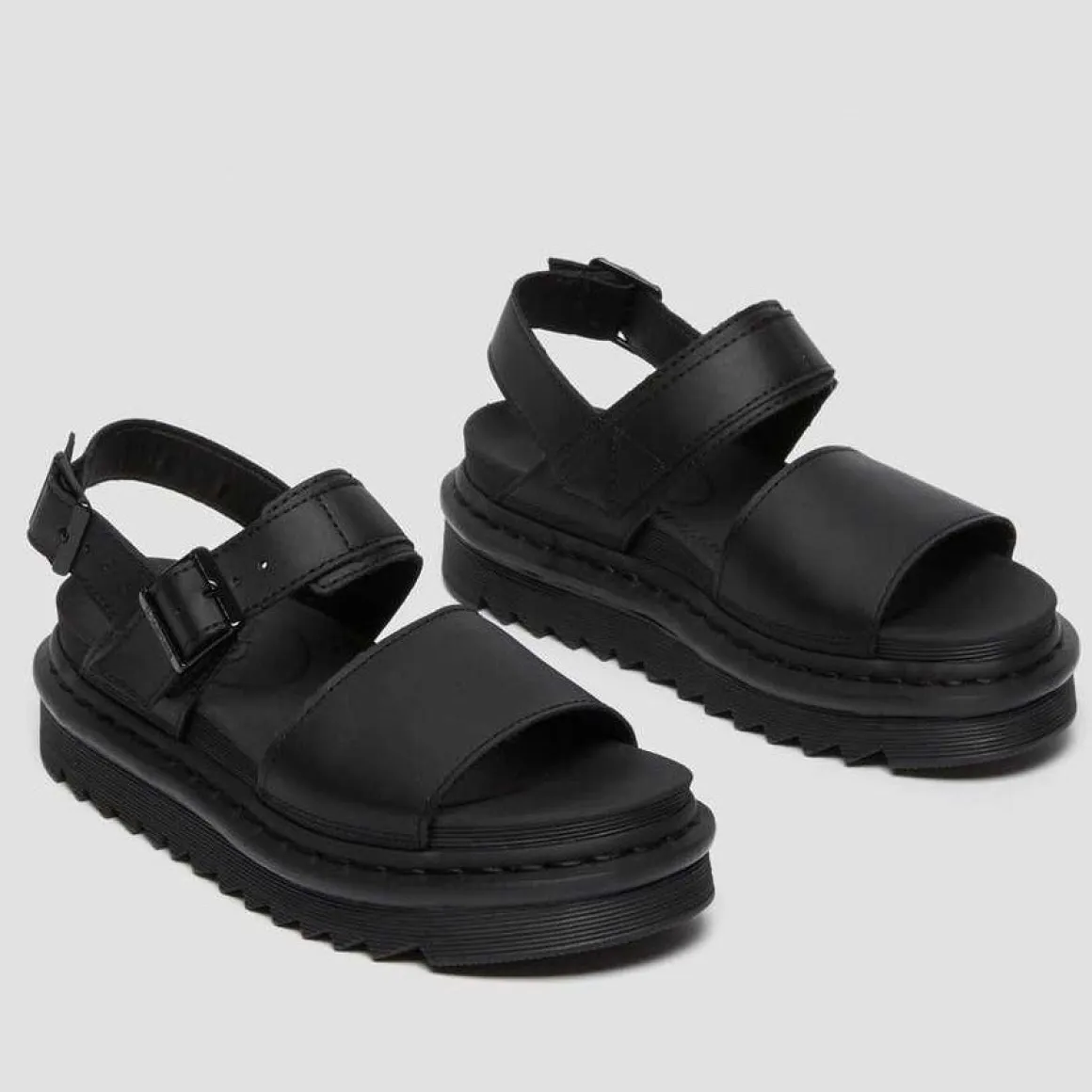 Dr. Martens Voss er endelig tilbake. En dristig og kul sandal som har de velkjente detaljene fra Dr. Martens. Sandalene er laget av Hydro-skinn med to justerbare stropper. De sitter på en superlett, enestående såle.