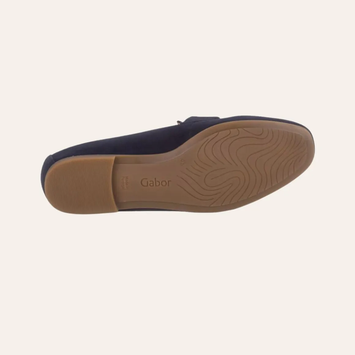 Elegant og komfortabel loafer fra Gabor, laget i myk semsket skinn av høy kvalitet. Skoen har flat hæl på 1,5 cm, rund tå og et tidløst design som gjør den perfekt både til hverdags og jobb. Den skinnfôrede innsiden gir god komfort gjennom hele dagen, mens normal bredde (vidde F) passer de fleste føtter. Produsert i Europa med fokus på kvalitet og passform.