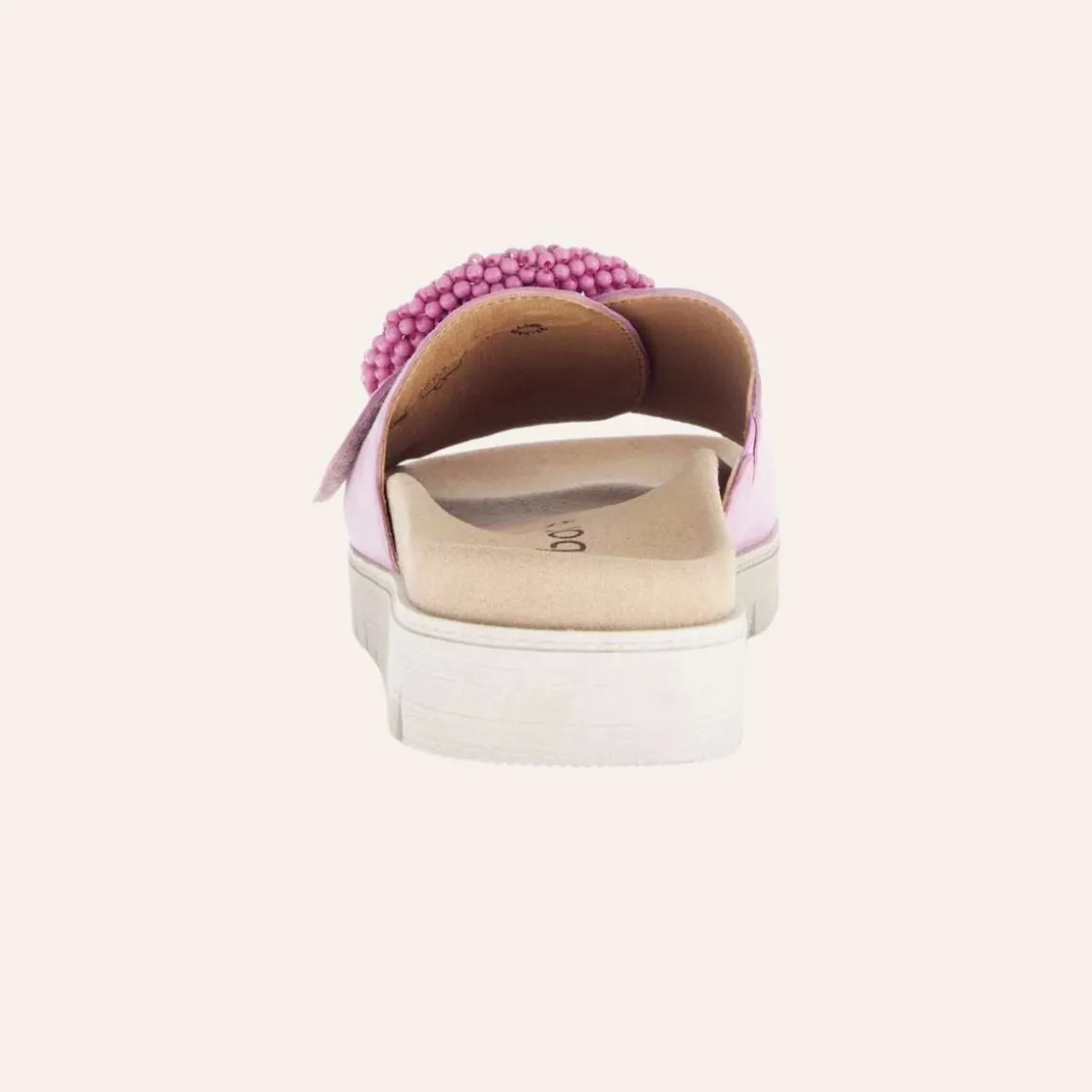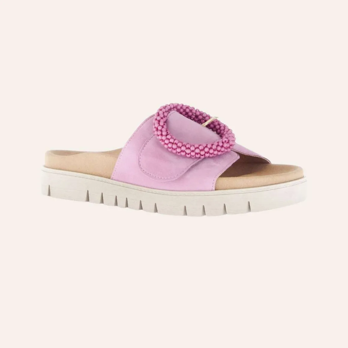 Gå komfortabelt gjennom dagen med disse stilige rosa semskede sandalene fra Gabor. Den behagelige sålen og brede stroppen med borrelås som sørger for komfort gjennom hele dagen.