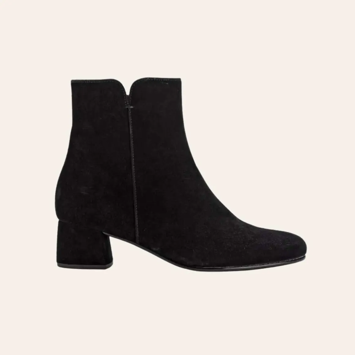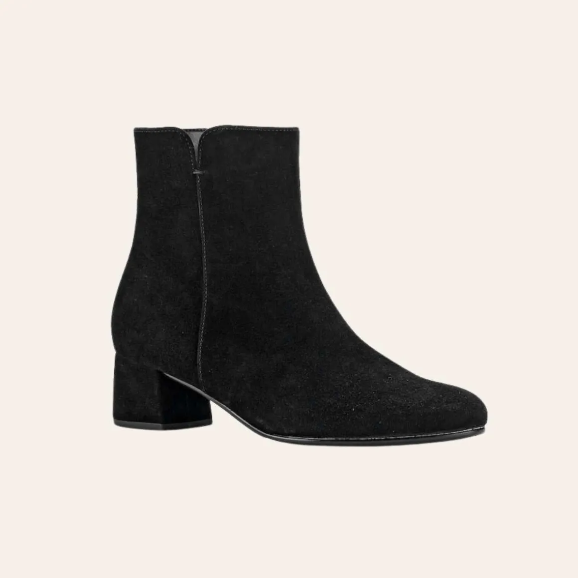 Denne svarte semskede ankelstøvletten fra Gabor med kledd hæl og elegant utskjæring er akkurat det du leter etter. Det klassiske designet i svart passer til ethvert antrekk. Takket være det faste fôret og den praktiske glidelåsen er denne støvletten ikke bare vakker, men også svært brukervennlig.
