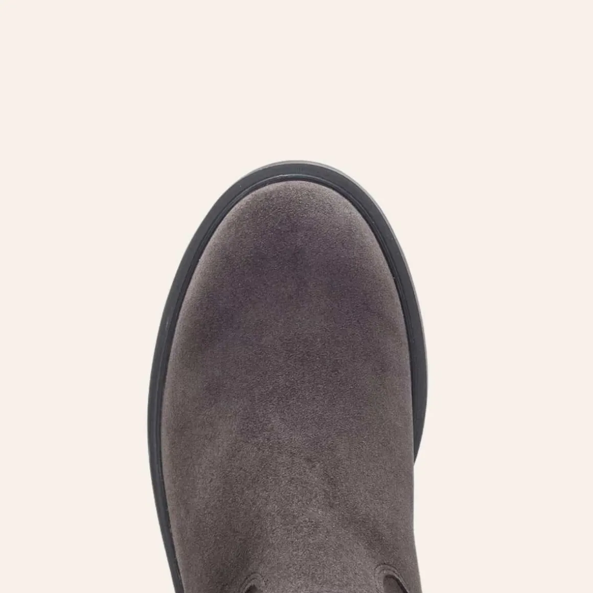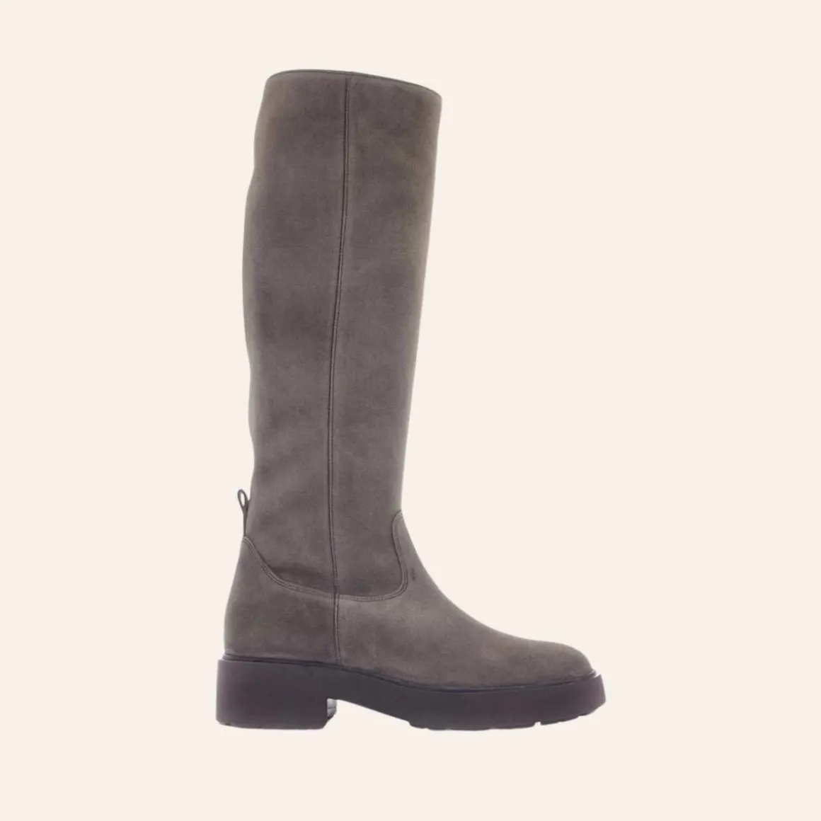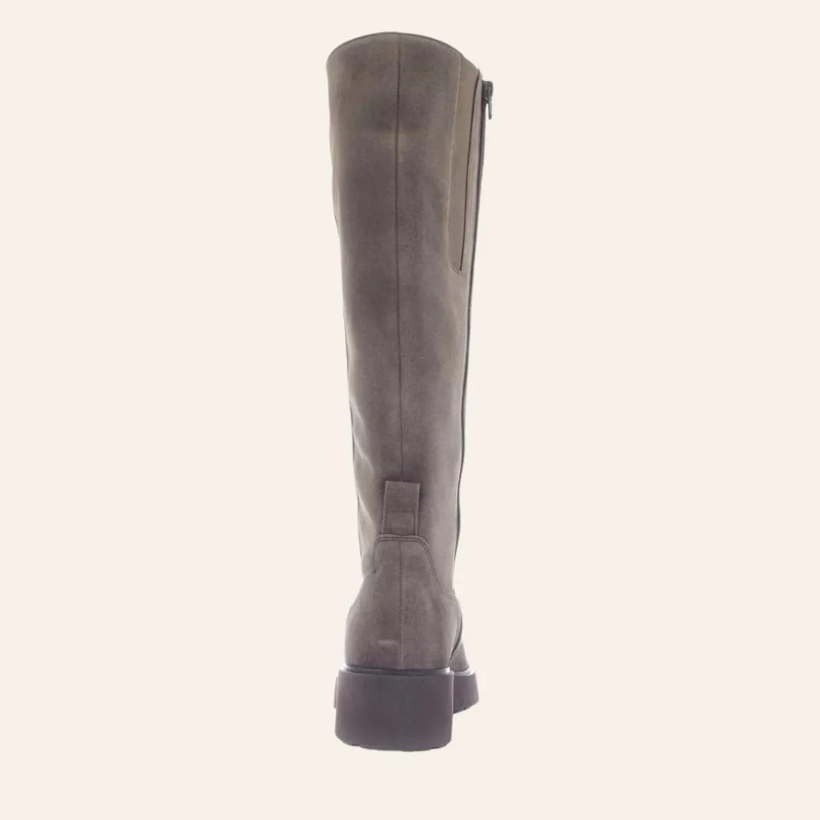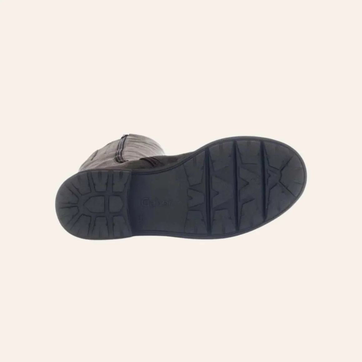 Denne stilrene støvletten fra Gabor kombinerer eleganse og komfort. Laget i mykt, bærekraftig semsket skinn med microfôr på innsiden for behagelig passform. Den stabile blokkhælen på 5 cm gir god støtte og en feminin silhuett. Skaftet er 42 cm høyt og gir et klassisk uttrykk – perfekt til både hverdag og penere anledninger.