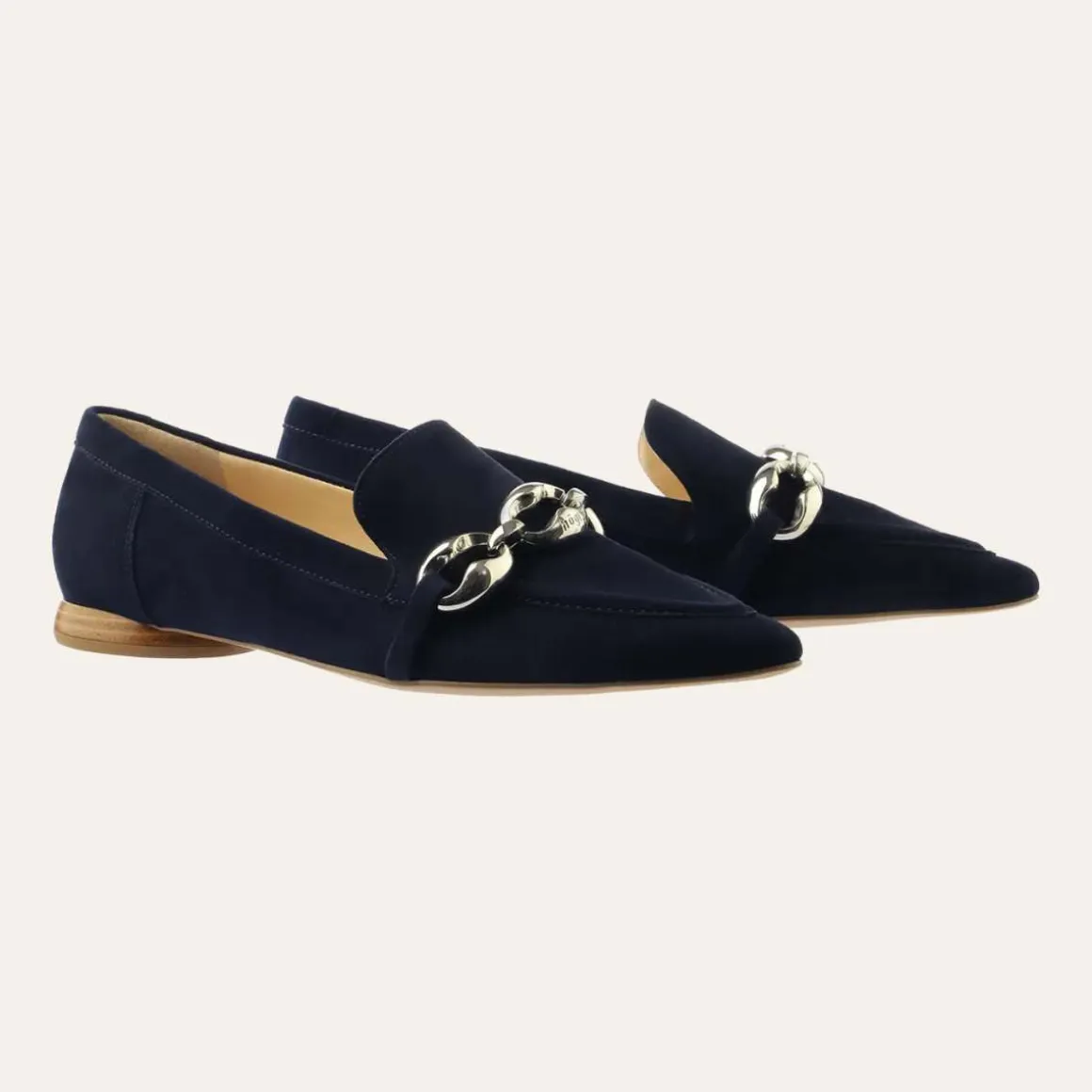 De stilrene Judy-loaferne fra Högl kombinerer feminin eleganse med høy komfort. Overdelen i mykt semsket skinn gir et eksklusivt uttrykk, mens den spisse tåen og den slanke silhuetten gir et sofistikert preg.