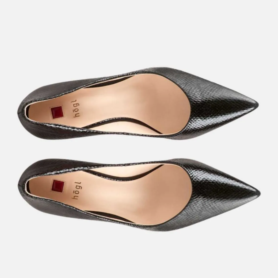 Høgl sine lekre og elegante pensko i croc-skinn. Det feminine designet har høye stiletthæler og skinnende skinn med slangeskinnseffekt. Disse høye hælene vil alltid gi antrekket ditt en klassisk oppgradering.