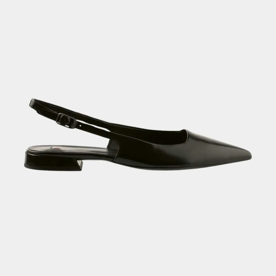 Høgl sine slingback-ballerinaer «Sophie» kombinerer bærekraftig glatt svart skinn med en slank, elegant passform. Den spisse ballerinasilhuetten er åpen ved hælene. De fleksible stroppene og det myke skinnfôret av førsteklasses kvalitet gir utmerket komfort. Et sofistikert sommerskoalternativ som passer godt til tidløse skjortekjoler eller feminine midiskjørt.