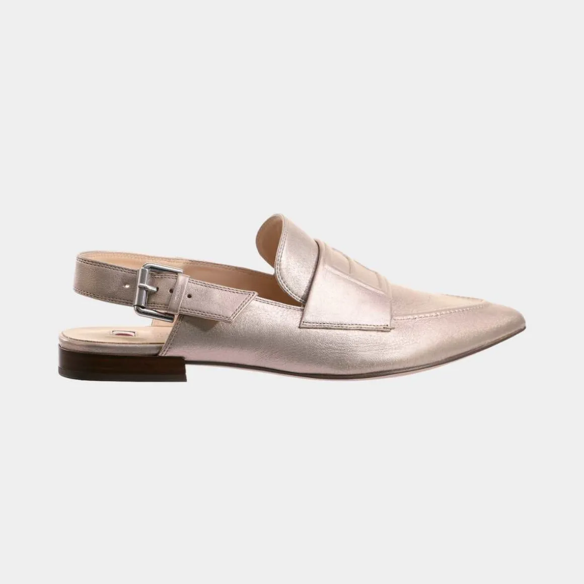 Sofistikerte ballerinaer i metallisk skinn med slingback fra Høgl. Til deg som elsker at det skinner litt ekstra – dette er skoen for deg. Spenne på slingbacken som du enkelt kan justere slik du får en perfekt passform.