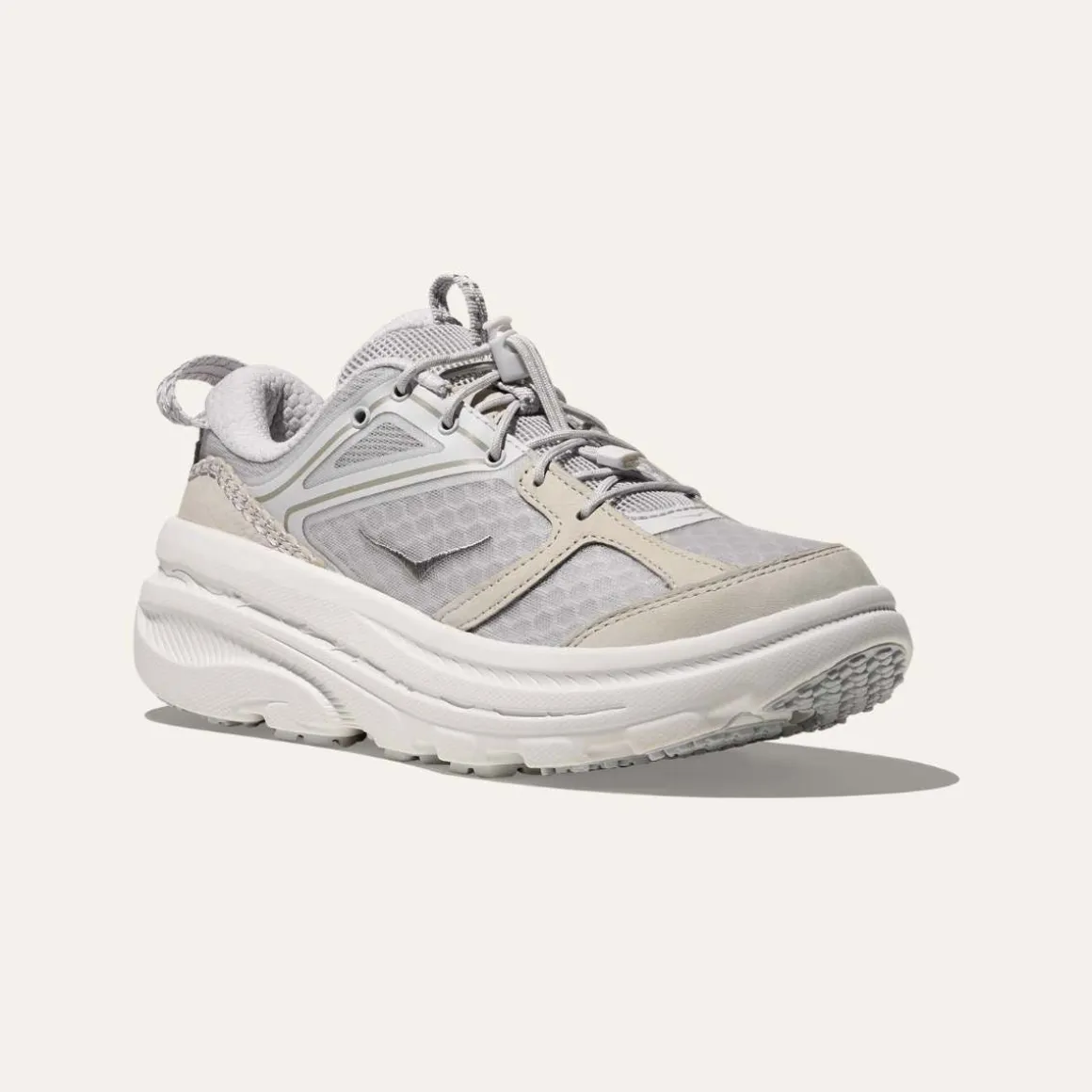 Ikke redd for å gå stort, Bondi B3LS visker ut grensene mellom ytelse, komfort og stil. Bygget på en maksimaldempet mellomsåle, med en retro sekskantet mesh-overdel og rike Nubuck-overlegg, omdefinerer denne sneakeren begrepet «å ha alt».