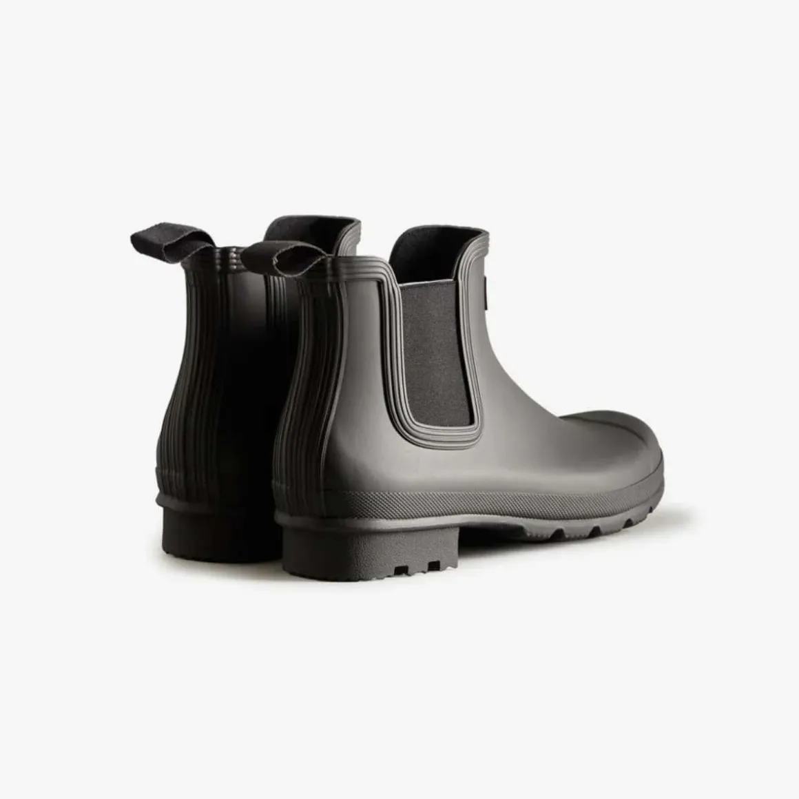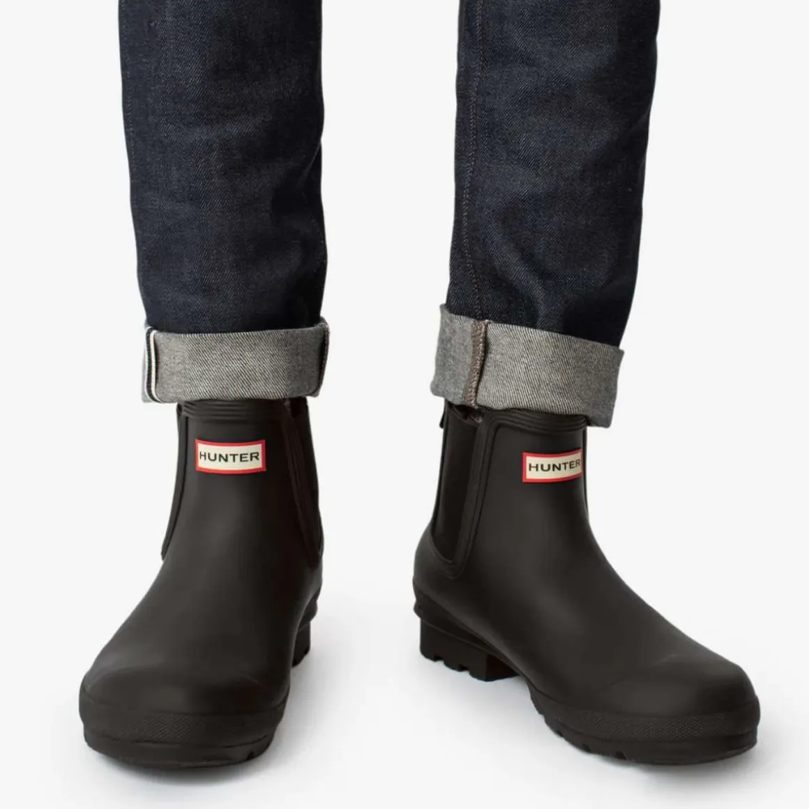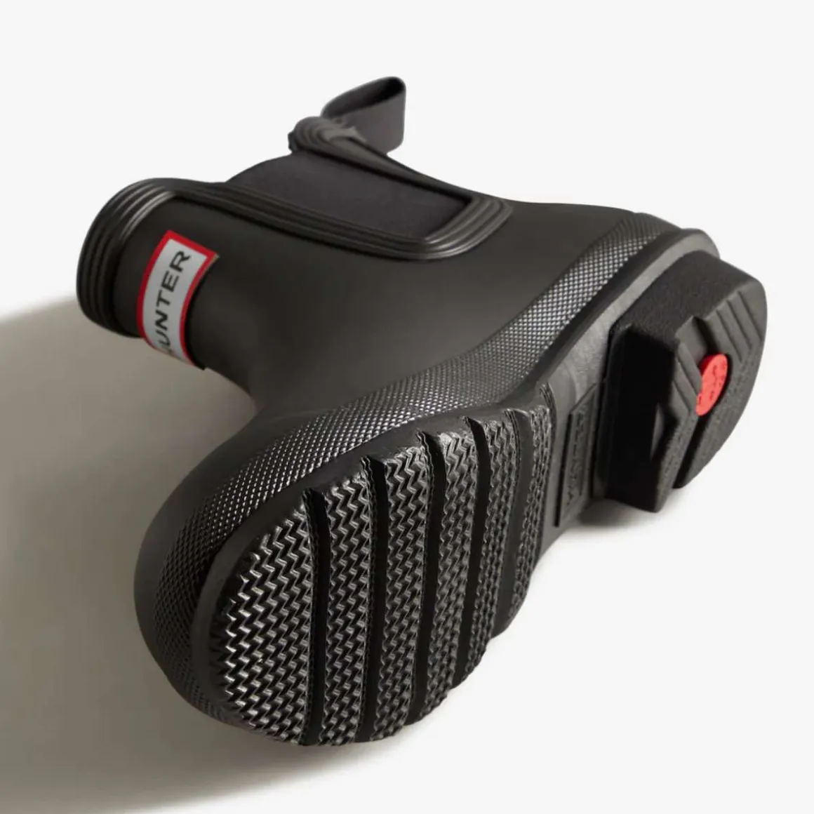 Hunter Original Chelsea Boot er nyutviklet for en forbedret passform og heldagskomfort. Med en bredere ankelomkrets og økt kurve ved hælen og rundt akillessenen, gir den en enda mer behagelig passform. Den nye og forbedrede Hunter Original Chelsea Boot har optimal passform for maksimal komfort hele dagen. Håndlaget av naturlig gummi og vulkanisert for overlegen beskyttelse, er den klar for regnvær. Støvelen beholder de ikoniske egenskapene til en tradisjonell Chelsea, med elastiske paneler og en nylonhempe som gjør det enkelt å ta støvelen på. I klassisk sort matt er disse vanntette Chelsea-støvlene en nødvendighet i regnværsgarderoben.
