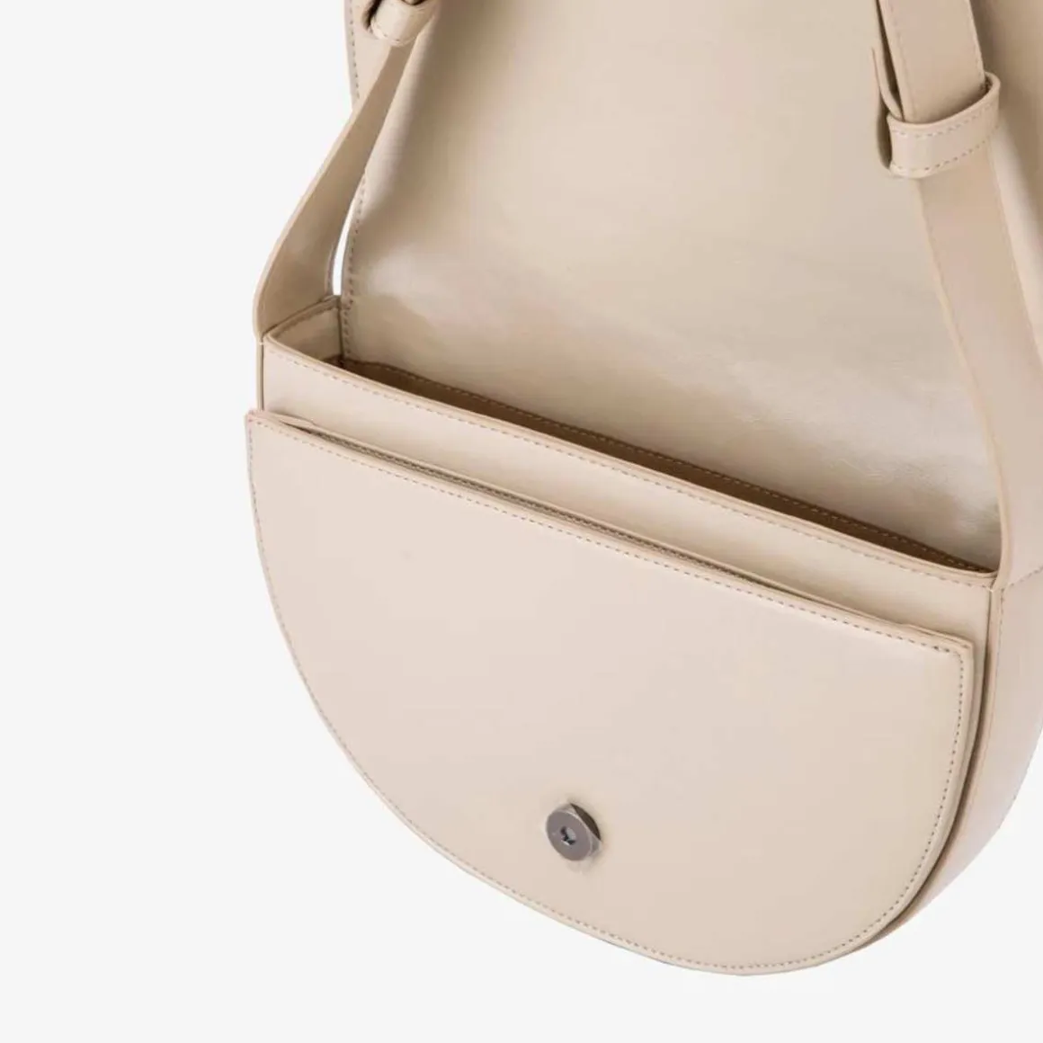 Crossbody-veske med justerbar stropp. Vesken inneholder ett hovedrom, et mindre rom foran og en innerlomme.