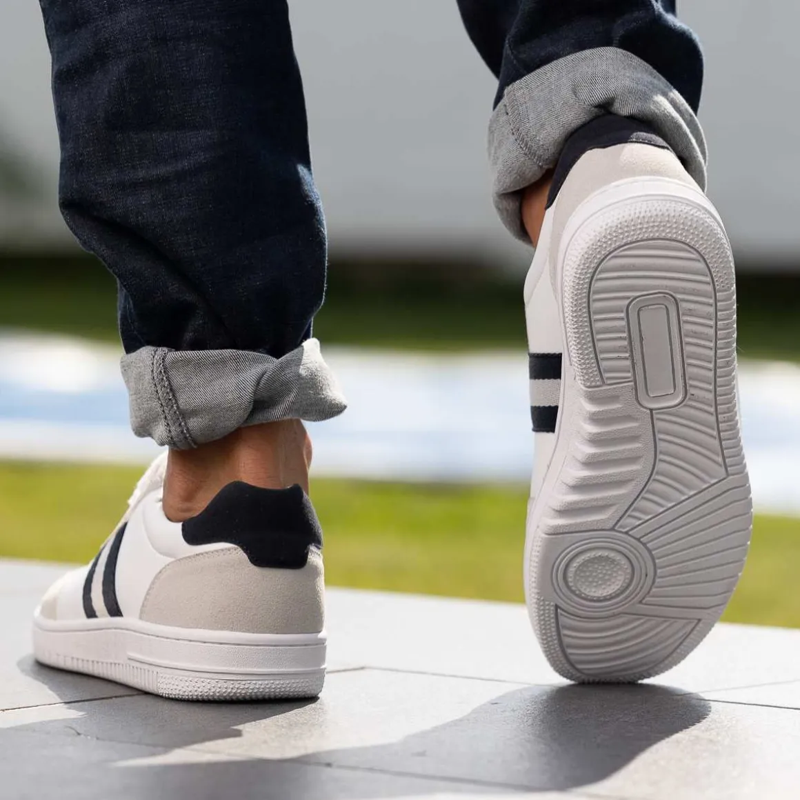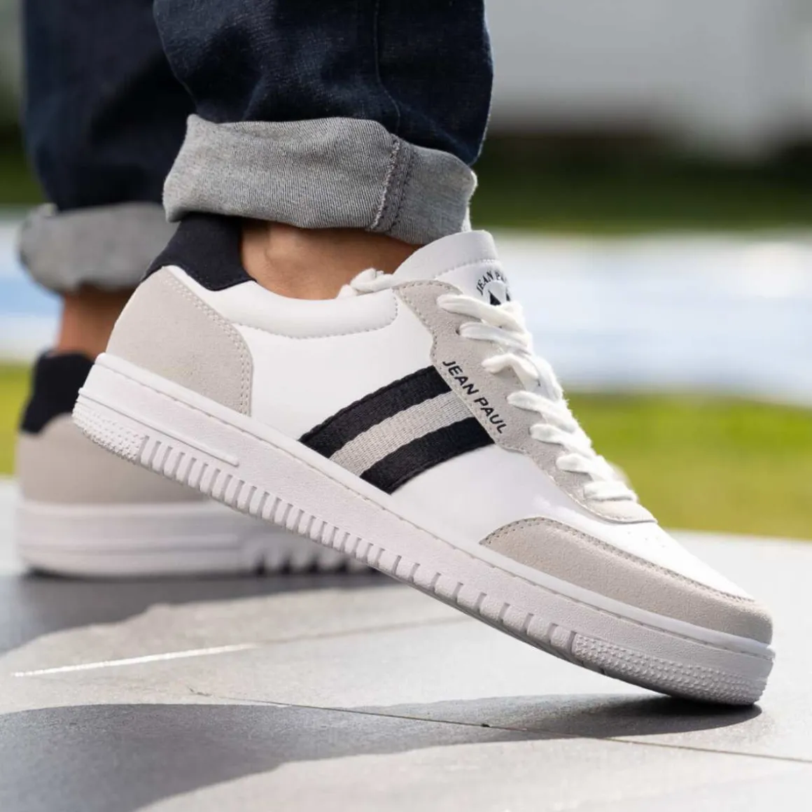 Klassisk og komfortabel tennisinspirert sneakers. Tå- og hælparti i semsket PU. Snørestykke med 7 lissehull. Dekorativt stripet bånd på siden. God dempet innersåle og hvit yttersåle i non-marking TPR. Logo på tunge og side.