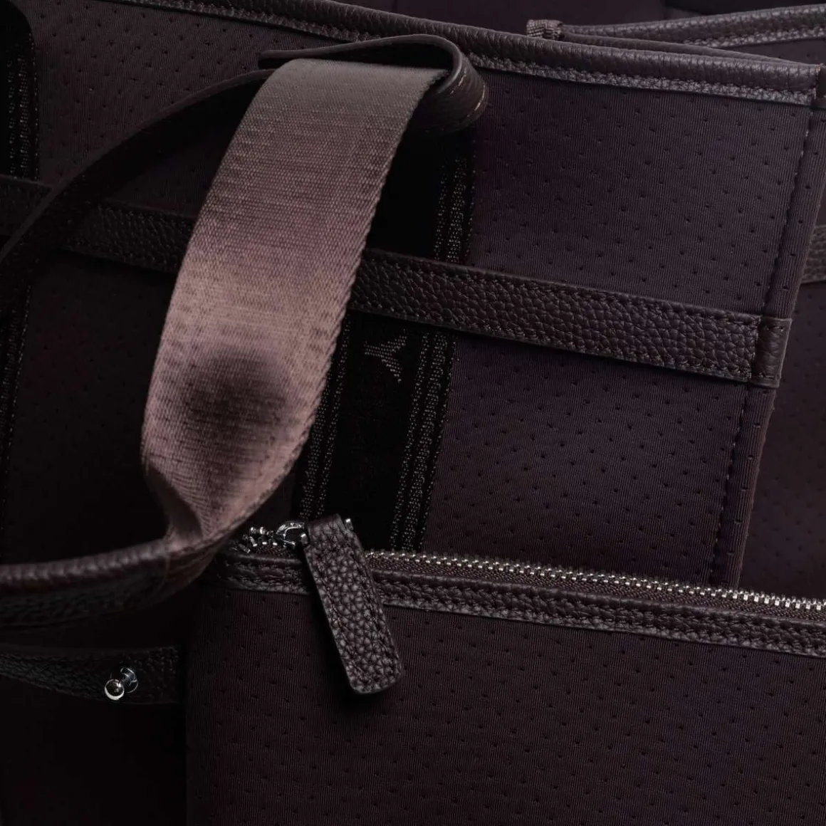 Cali Tote Neoprene er Jim Rickey sin sport-luksusveske, perfekt for en aktiv og stilbevisst livsstil. Den er laget av høykvalitets neopren med skinn-detaljer, som gir et moderne og sofistikert uttrykk. Håndtaket er designet med vår diskré tone-i-tone logoreim, og vesken leveres også med en avtakbar skulderrem for ekstra fleksibilitet.