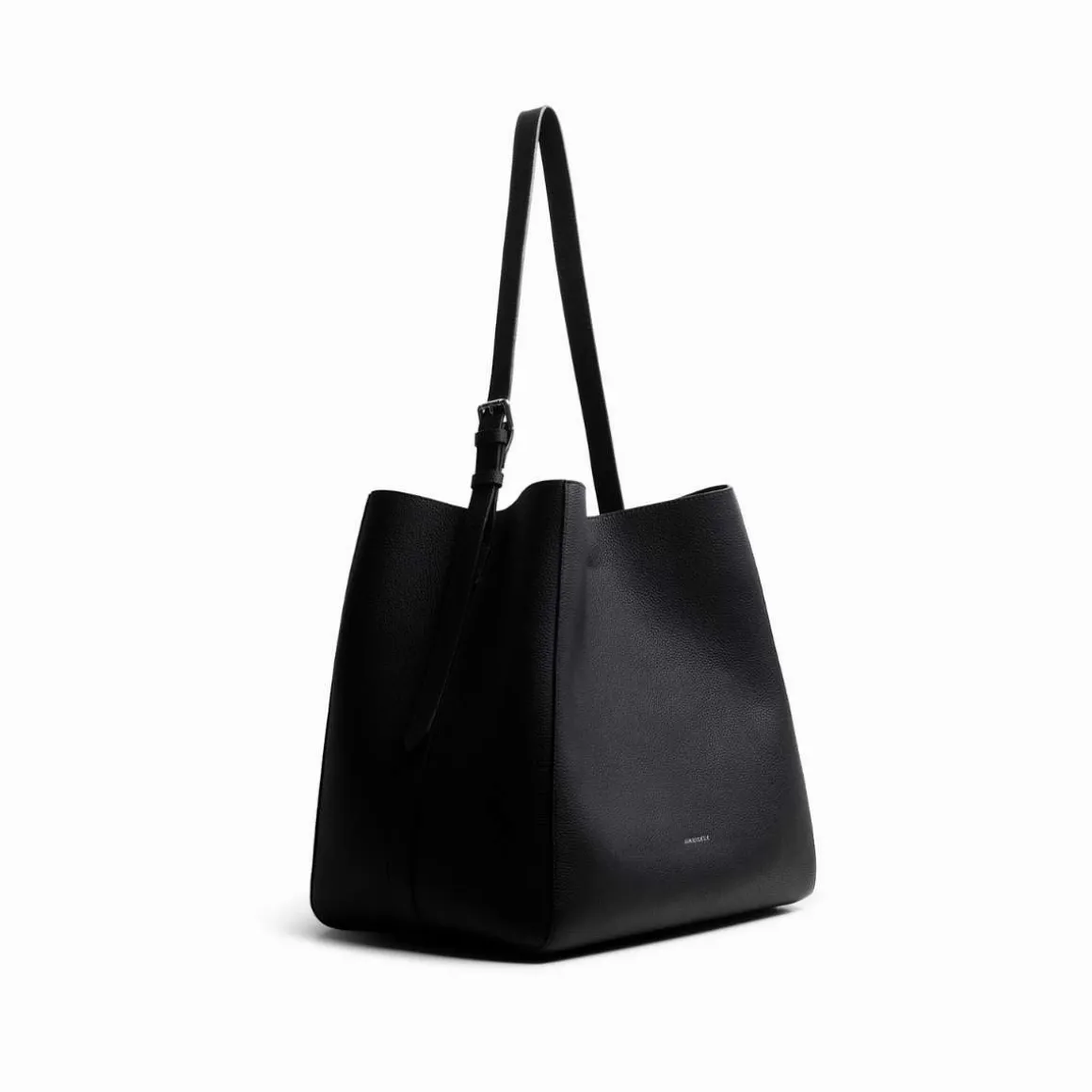 En romslig, sekk-inspirert veske med justerbar bærestropp, innerlomme med glidelås og et minimalistisk design. Elegant og klassisk – den kompletterer ethvert antrekk med diskret branding.