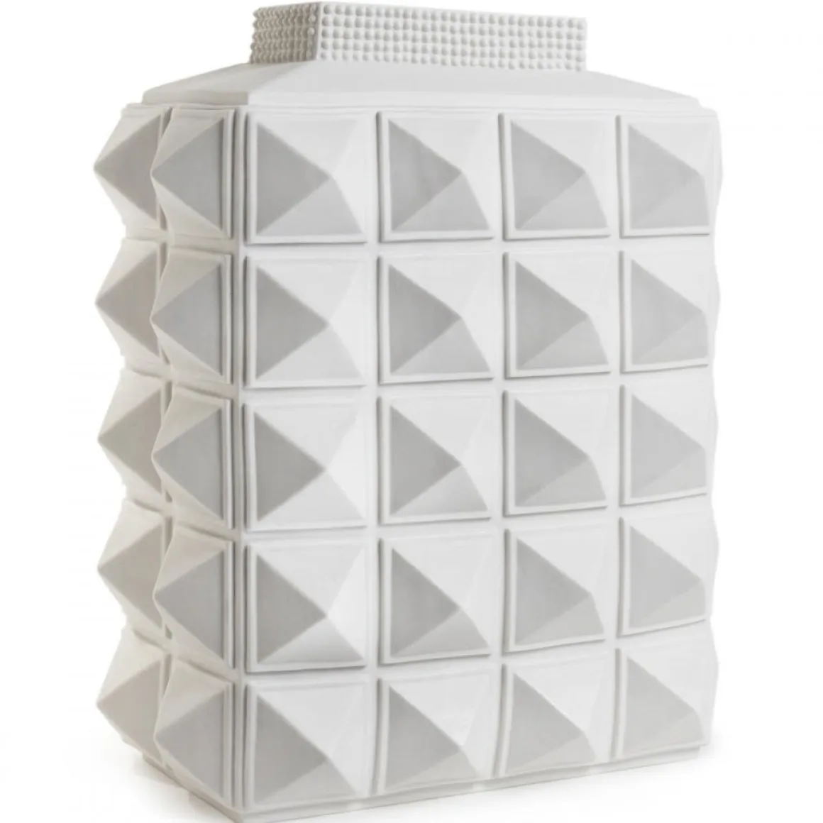 Dekorativ vase fra Jonathan Alder. Tøff glamour har aldri sett så bra ut. Med skarpe linjer og en grafisk silhuett, får vår Charade Studded Vase en ekstra dimensjon med sitt uglaserte eksteriør. Den er den perfekte størrelsen for en inngangskonsoll eller som et midtpunkt på et glam middagsselskap.