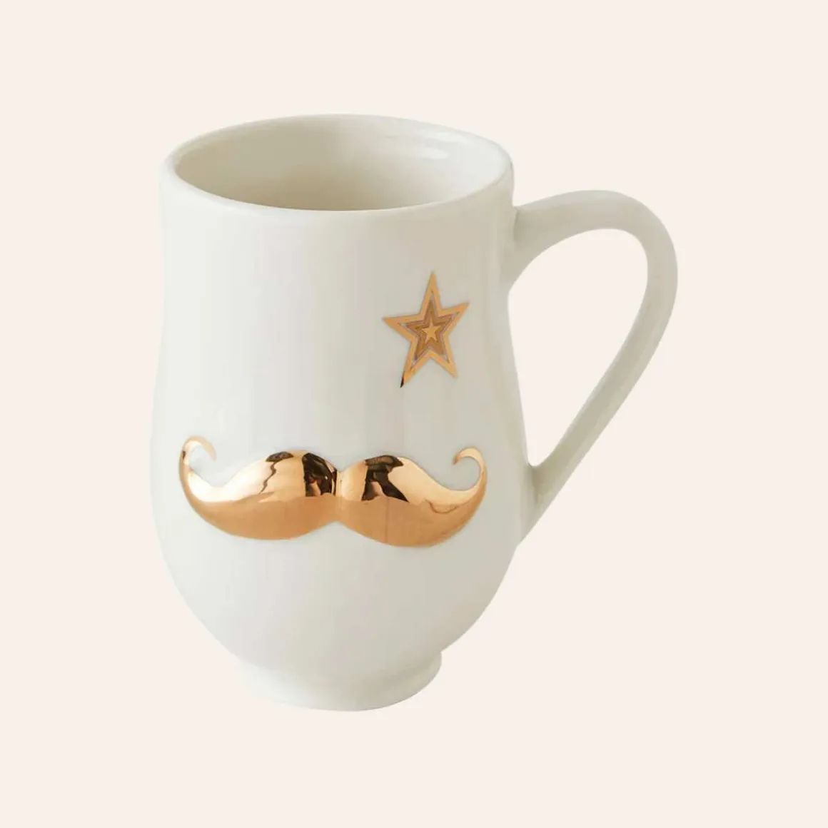 Krus fra Jonathan Adler. Med bart på den ene siden og lepper på den andre er det tosidige Mr. & Mrs. Muse-kruset det perfekte hans og hennes—bokstavelig talt.