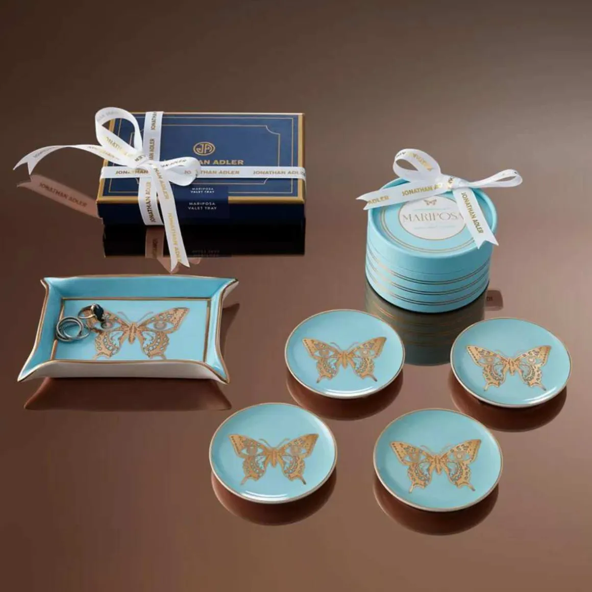 Jonathan Adler Mariposa Coasters – Set of 4, Blue/Gold