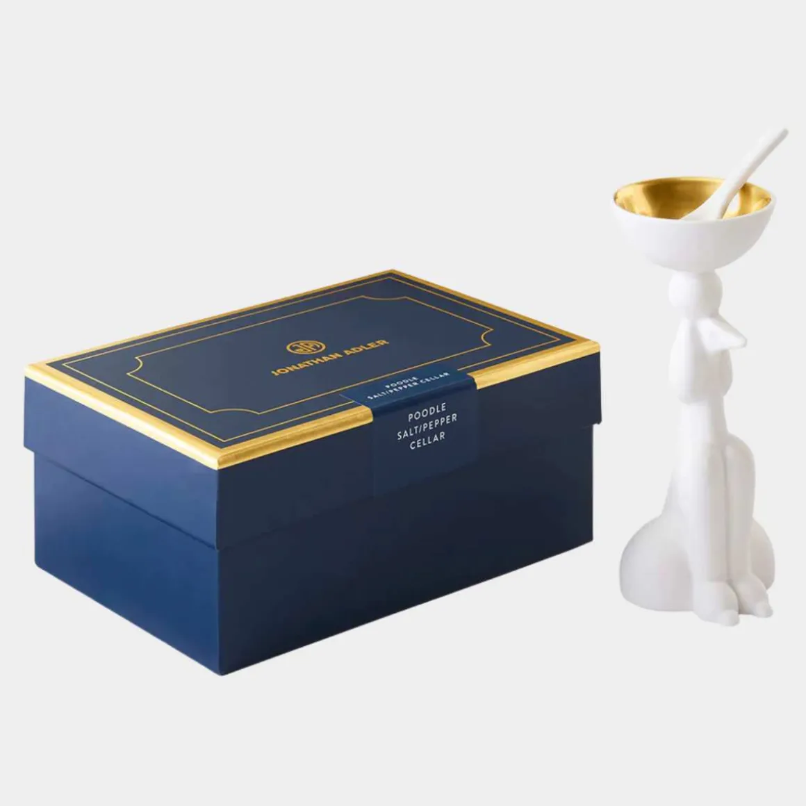 En håndlaget hyllest til en av våre favoritt-hunder. Poodle Salt & Pepper Cellar fra Jonathan Adler er et sjarmerende sted for krydderet du bruker mest. Den elegante puddel-formen er laget i matt porselen med en skinnende gullskål som gir et luksuriøst preg.
