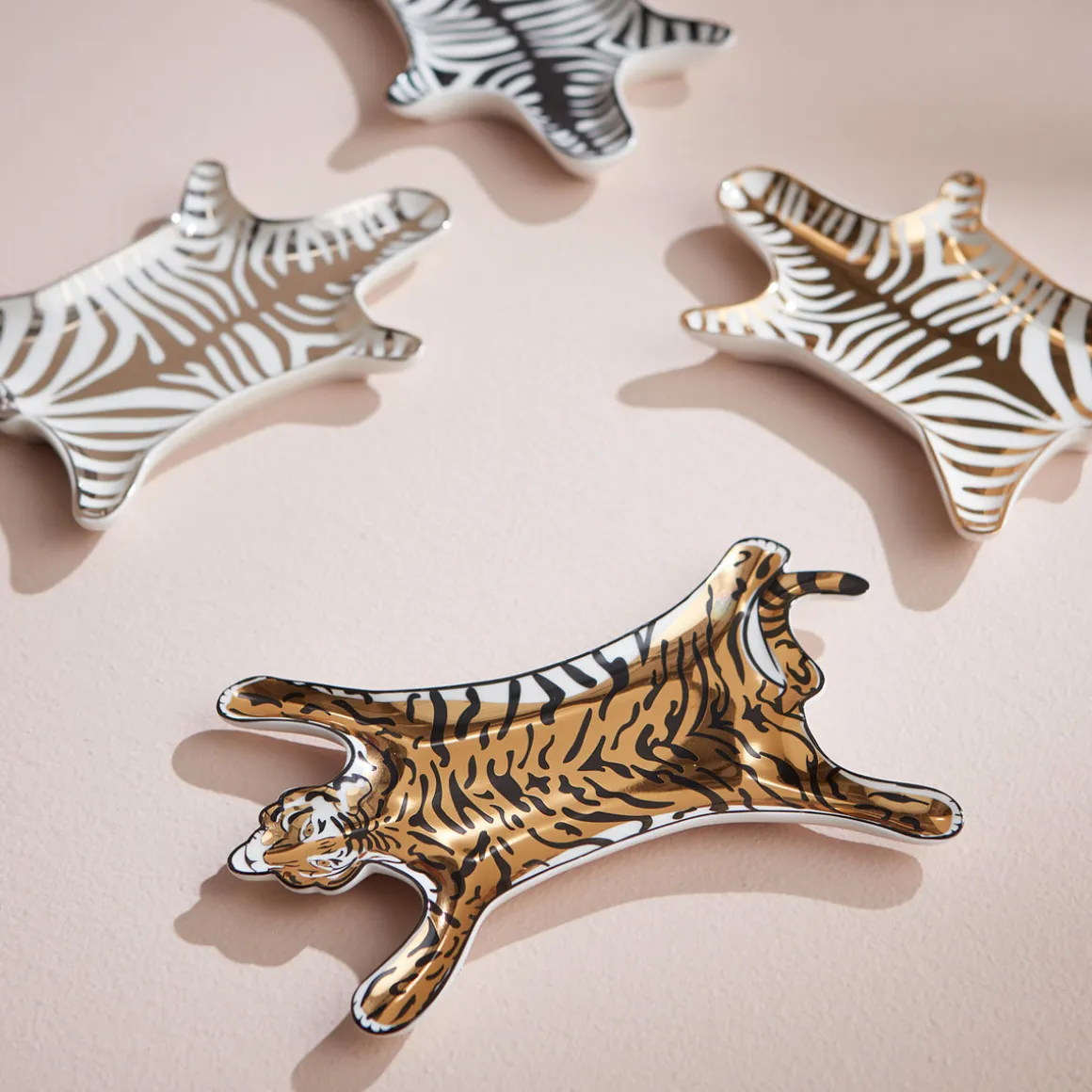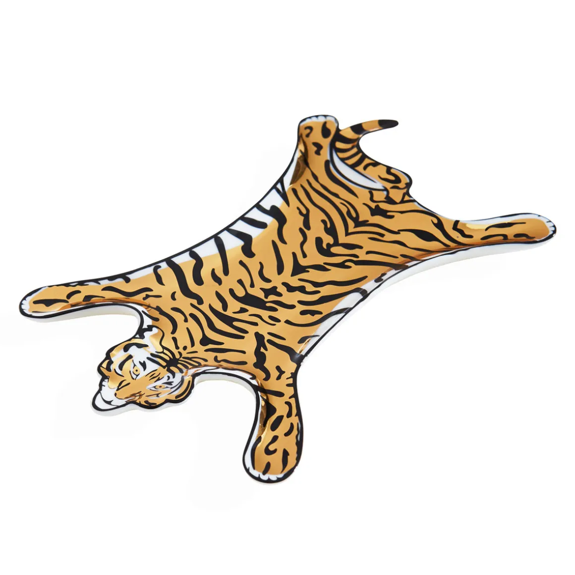 Dekorativ dish fra Jonathan Alder. Glitrende gull Tiger Shaped Stacking Dish tar et farlig guddommelig symbol på tidløs glamour og lar den glitre i all sin ville prakt på bordplaten, benken eller hyllen. Pakket i en kjekk gaveeske, er den en perfekt vertinnegave.