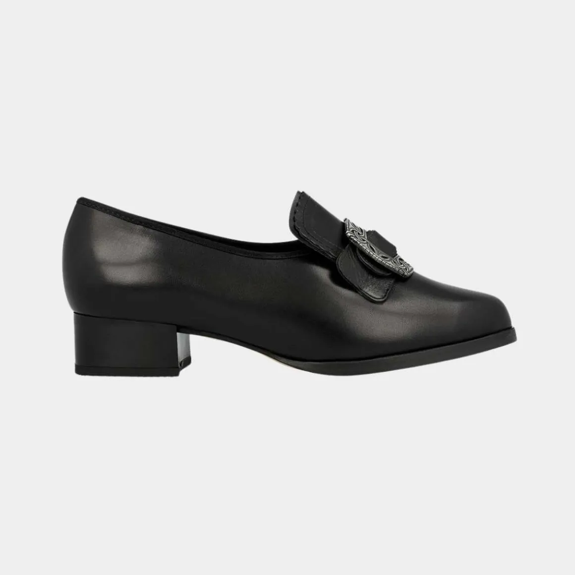 Klaveness Eli er en av de bunadskoene med mest volum og bredde. Bunadskoen har overdel i sort kalveskinn av høy kvalitet, og med mykt tekstil fòr med gode pusteegenskaper. Bunadskoen har stabil hel- og tåkappe som gir meget god komfort. Bunadskoen har neolit såle som er meget godt egnet for ute bruk under norske værforhold.