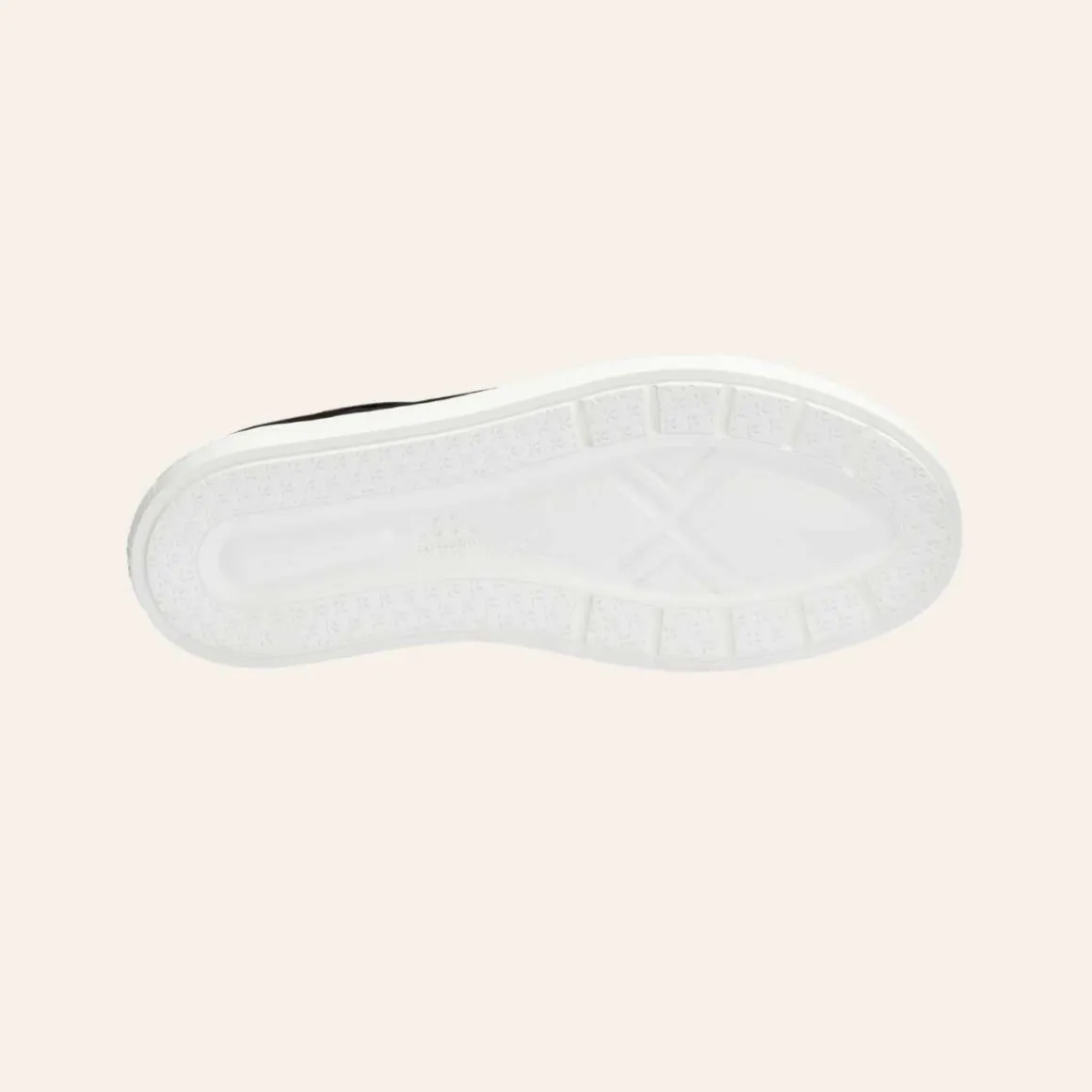 Skoen har elastisk slip-on-løsning, som gjør den enkel å ta av og på samtidig som den gir en fleksibel passform. Innvendig er modellen fôret med 100 % skinn, som gir god komfort og et behagelig fotklima gjennom hele dagen.