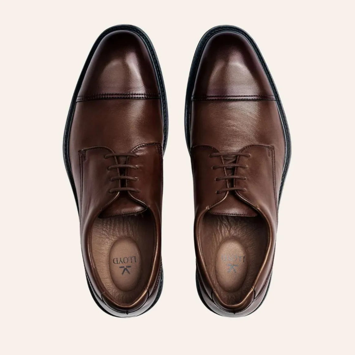 Oppdag LLOYD X-MOTION 150, en elegant derby-sko med snøring, designet for den moderne forretningsmannen. Laget av høykvalitets glatt skinn i klassisk brunt, utstråler skoen tidløs eleganse. Den smale tuppen gir et moderne preg, mens det 100 % skinnfôret gjør den behagelig å ha på. Takket være en uttakbar innersåle i skinn kan komforten tilpasses individuelt. Snøringen gjør det mulig å justere passformen etter behov. Perfekt til forretningsanledninger, denne skoen gjenspeiler sofistikert stil og førsteklasses håndverk.