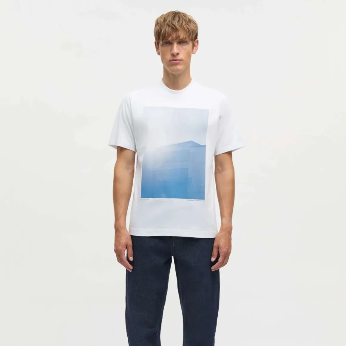 Kortermet T-skjorte med rund hals. Rett passform og stort fototrykk på fronten. Modellen er 187 cm høy og bruker størrelse 50 / Large.