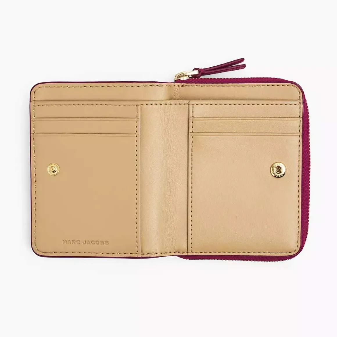 Denne kompakte mini-lommeboken fra Marc Jacobs er designet med samme dristige merkevarebygging som deres bestselgende veske. Festes med en trykknapp, den inkluderer fire kortspor, ett seddelomslag, to innvendige glidelommer, en myntlomme og to utvendige glidelommer.