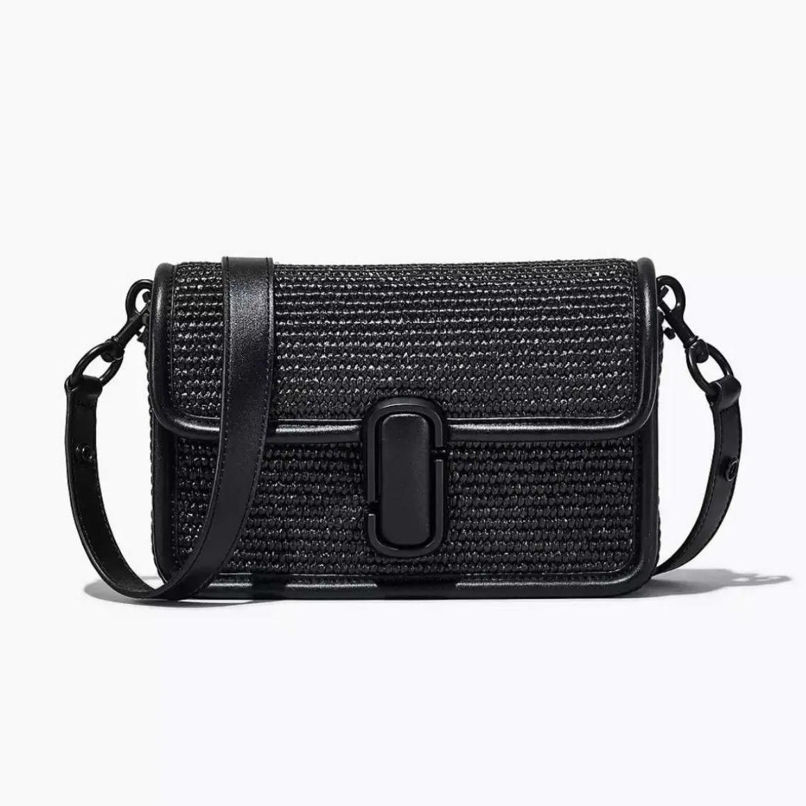 Denne versjonen av Marc Jacobs sin signatur J Marc Shoulder Bag er designet i vevd tekstur med tonale skinnkanter, matchende maskinvare med J Marc-lukking foran. På innsiden finner du en innvendig glidelomme, en innvendig glidelåslomme og en baklomme. Med tre måter å bære på, juster skulderremmen i skinn for å bæres under skuldrene, som en crossbody-veske, eller fjern stroppen for å style som en clutch.
