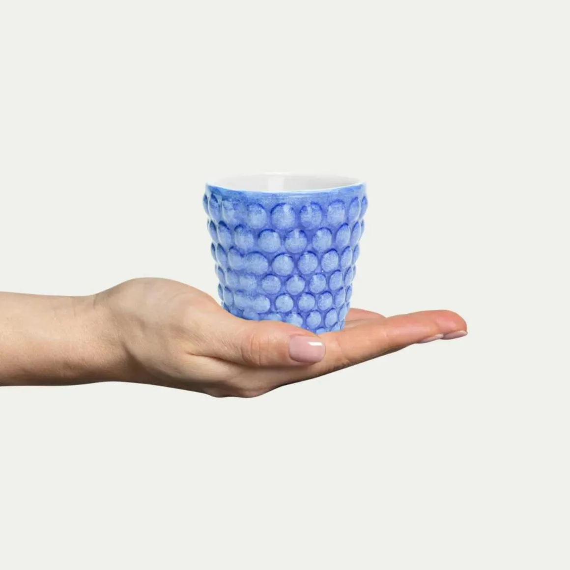 Mateus Bubbles Espresso Kopp – Nyt morgenespressoen din i denne dekorative koppen fra Mateus Bubbles-kolleksjonen. Størrelsen og designet gjør den ideell til å servere små forretter, saus, desserter og mer. Den glaserte overflaten er dekorert av bånd av skinnende bobler, inspirert av motens ikoniske prikkemønster, som gir hvert produkt et varmt og lekent uttrykk.