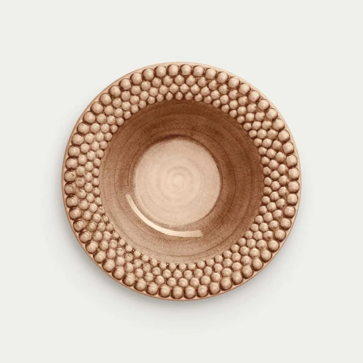 Mateus Bubbles Suppetallerk Cinnamon – Det lekne designet til denne suppetallerkenen fra Mateus Bubbles gir et lekent og kreativt preg til enhver borddekking. Alle produktene er håndlaget og håndmalt i Portugal ved bruk av tradisjonelle håndverksteknikker, noe som gjør hvert stykke unikt. Designet er preget av et skinnende mønster av glaserte bobler som er inspirert av motens ikoniske prikkemønster.