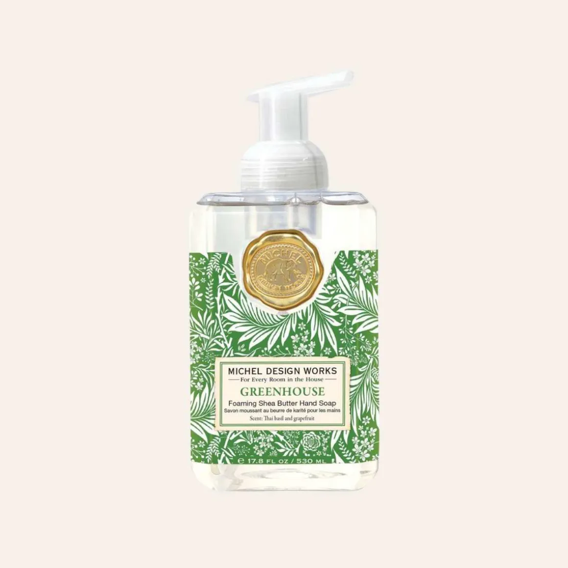 Michel Design Works såper er på 530 ml og beriket med sheasmør, jojobaolje og aloe vera som gjør dem både fuktighetsgivende og pleiende. Såpen kommer ut som et herlig, luftig skum, er svært drøy i bruk og har en duft som løfter hverdagen.