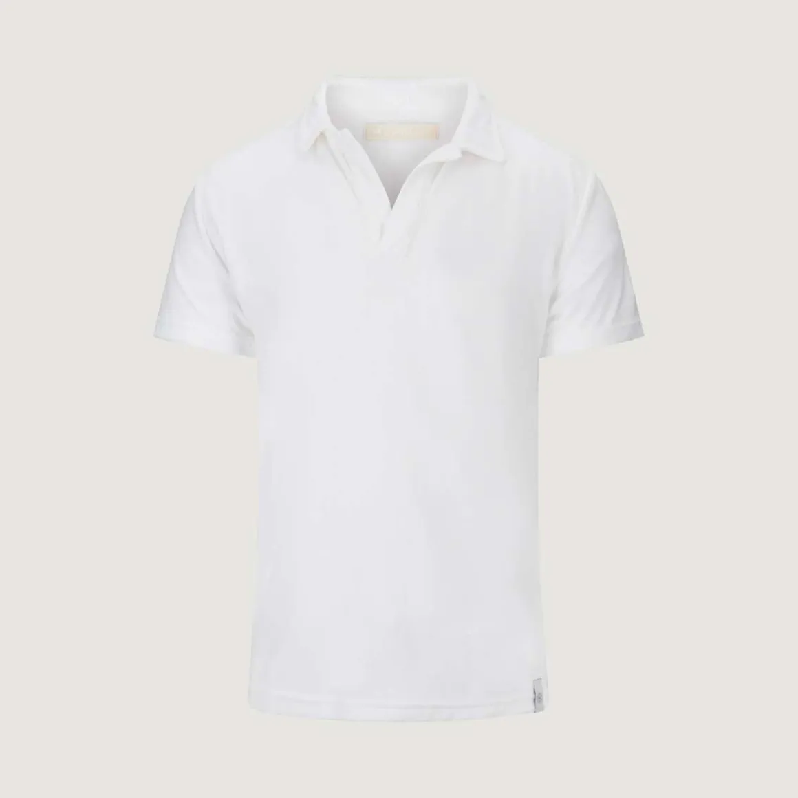 En komfortabel og stilren polo t-skjorte laget i myk bomullsfrotté. Modellen har klassisk krage og en avslappet passform som gir et uanstrengt uttrykk. Et allsidig plagg som passer perfekt til både hverdagsbruk og sommerlige anledninger. Kombiner den med matchende Mick terry-shorts eller jeans for en avslappet, men gjennomført stil.